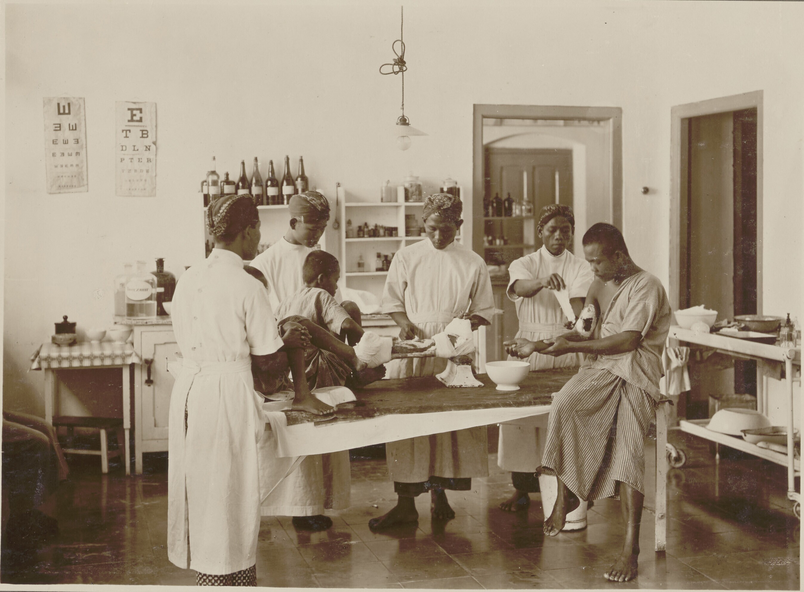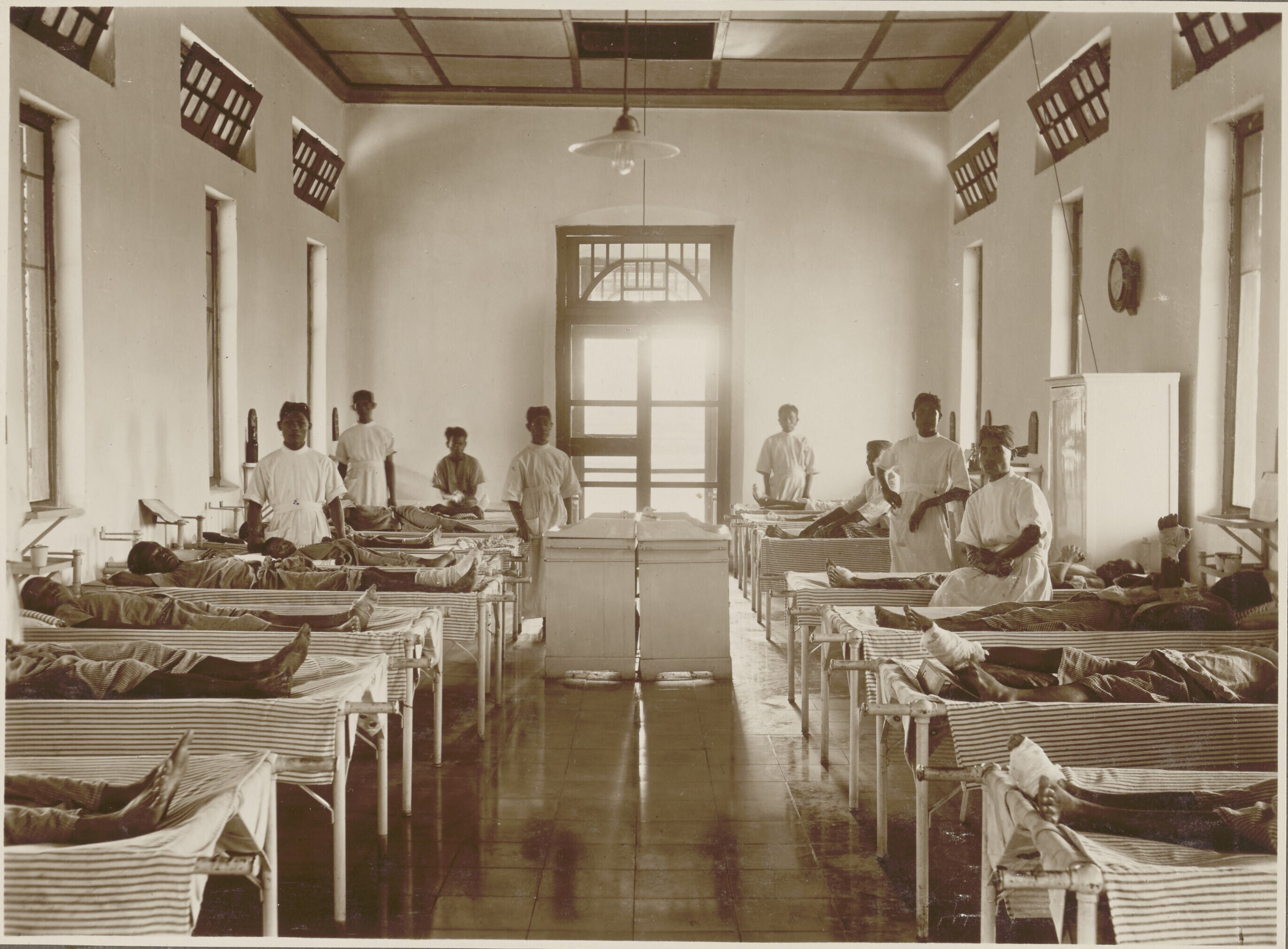 Ziekenzaal in de kliniek bij de suikerfabriek Pagong...