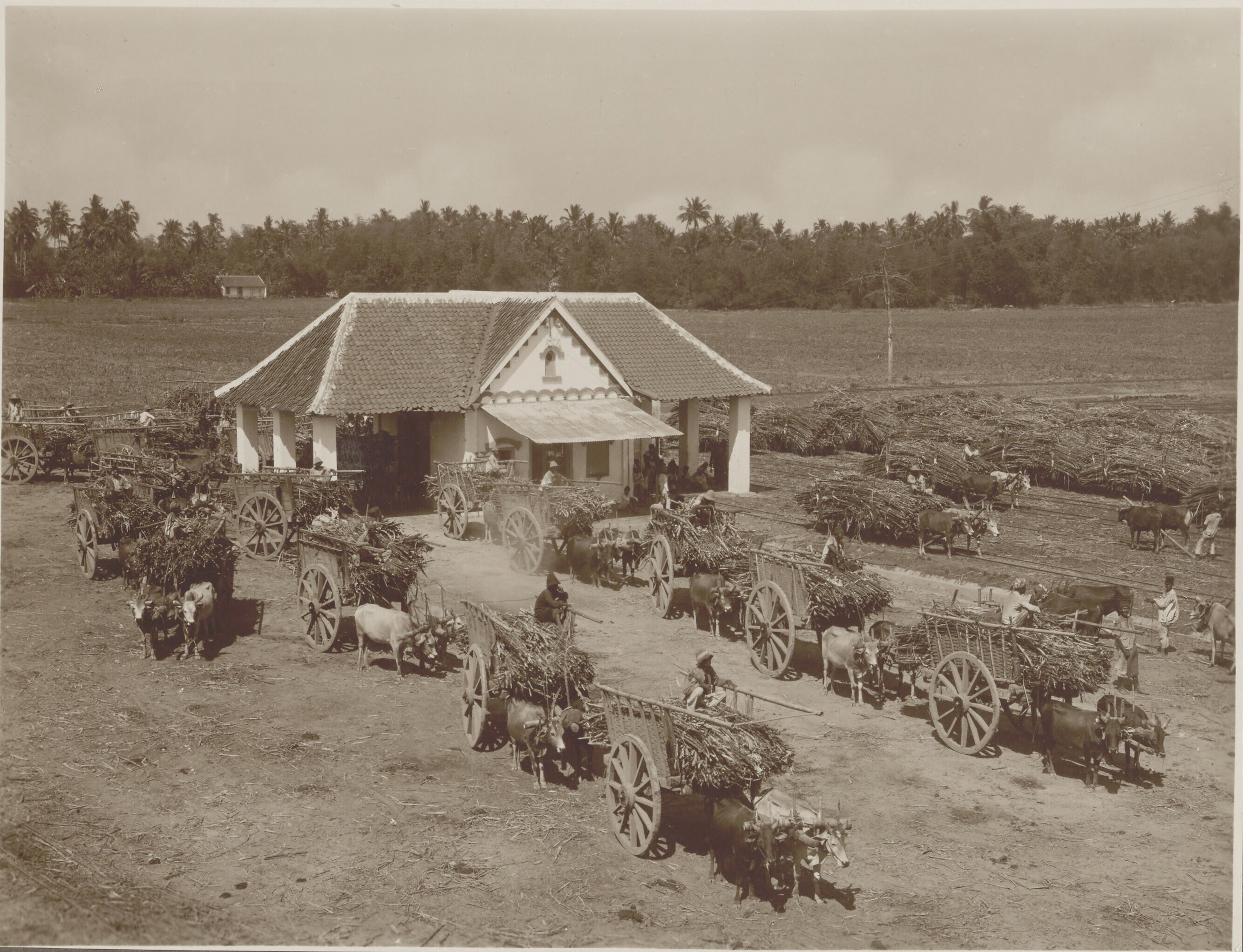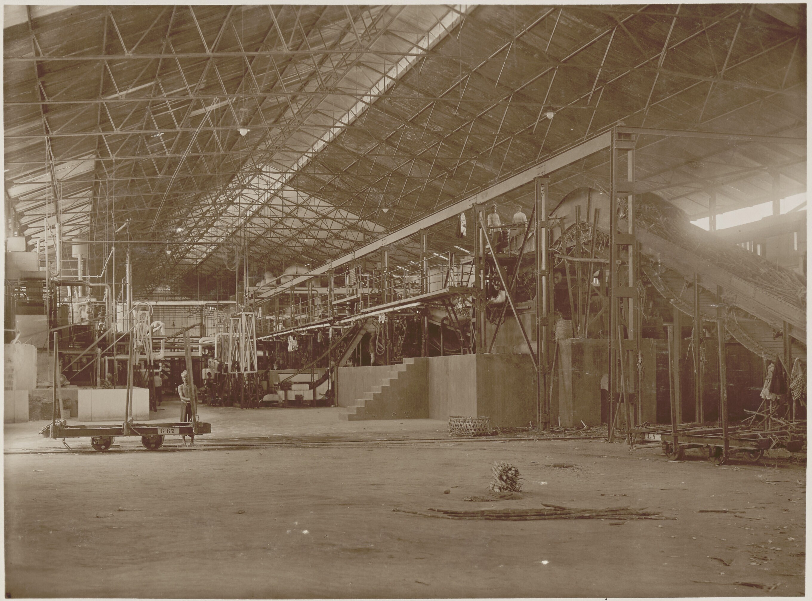 Suikerriet-carrier in de suikerfabriek Boedoeran, Si...