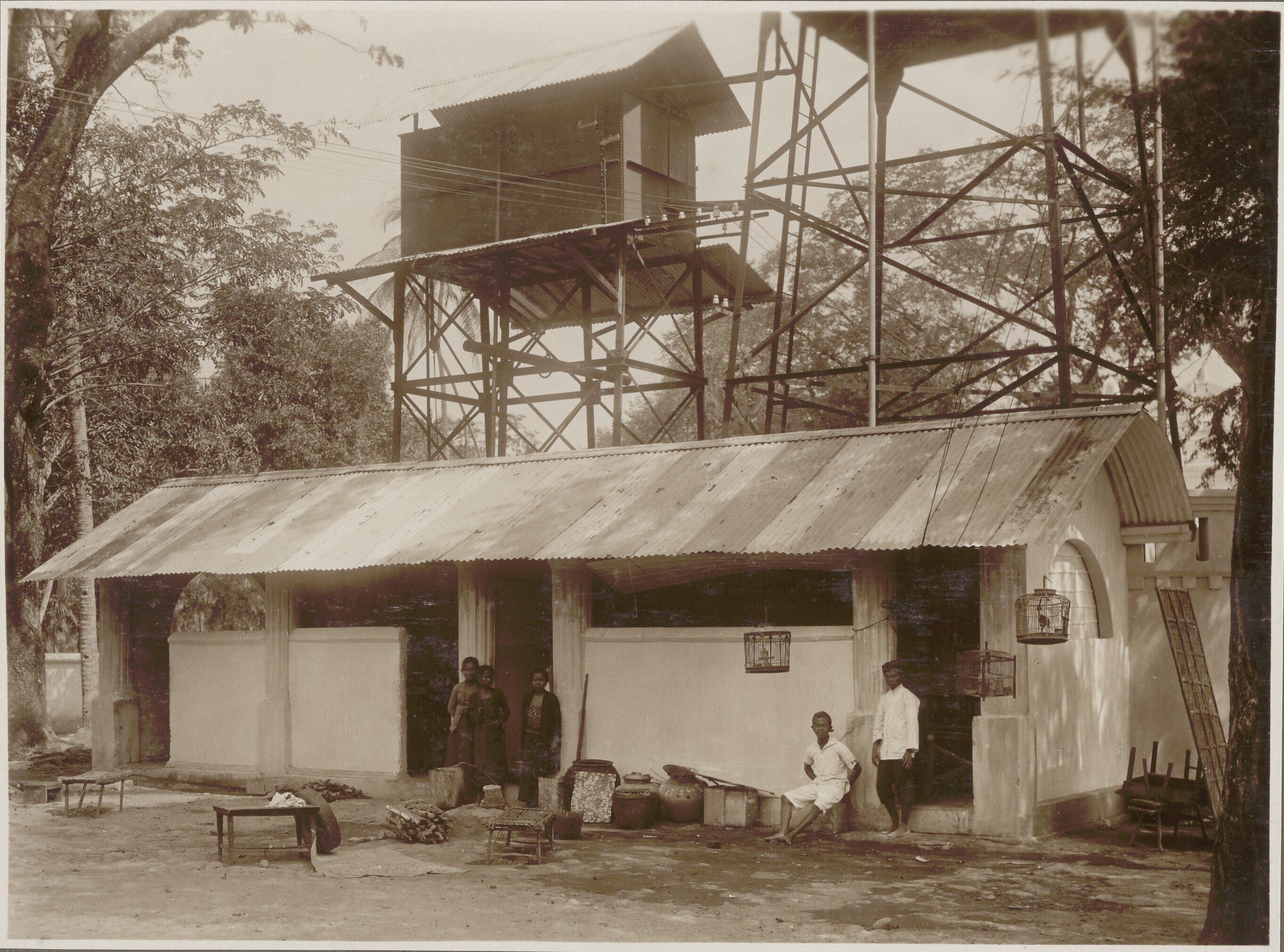 Een watertoren en een warong op het terrein van de s...