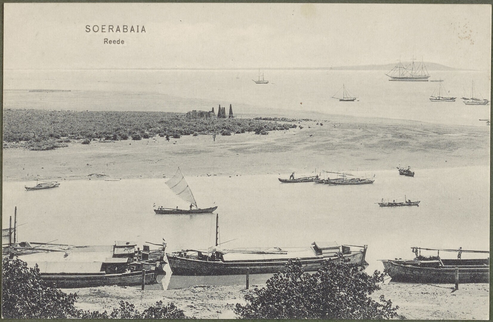 View along the coast with proas at Surabaya