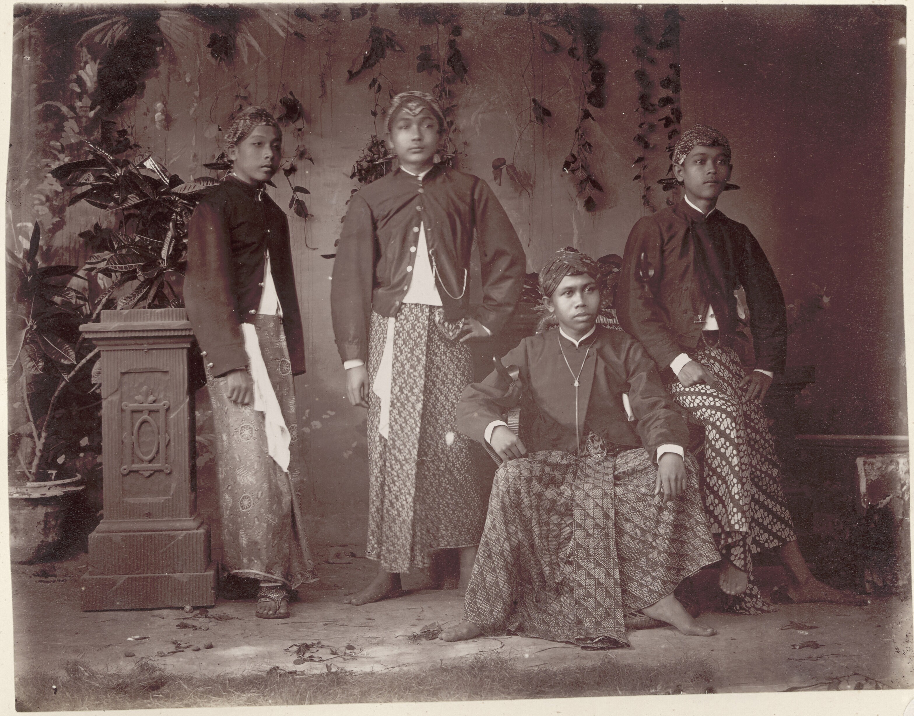Studioportret van vier jonge Javaanse mannen