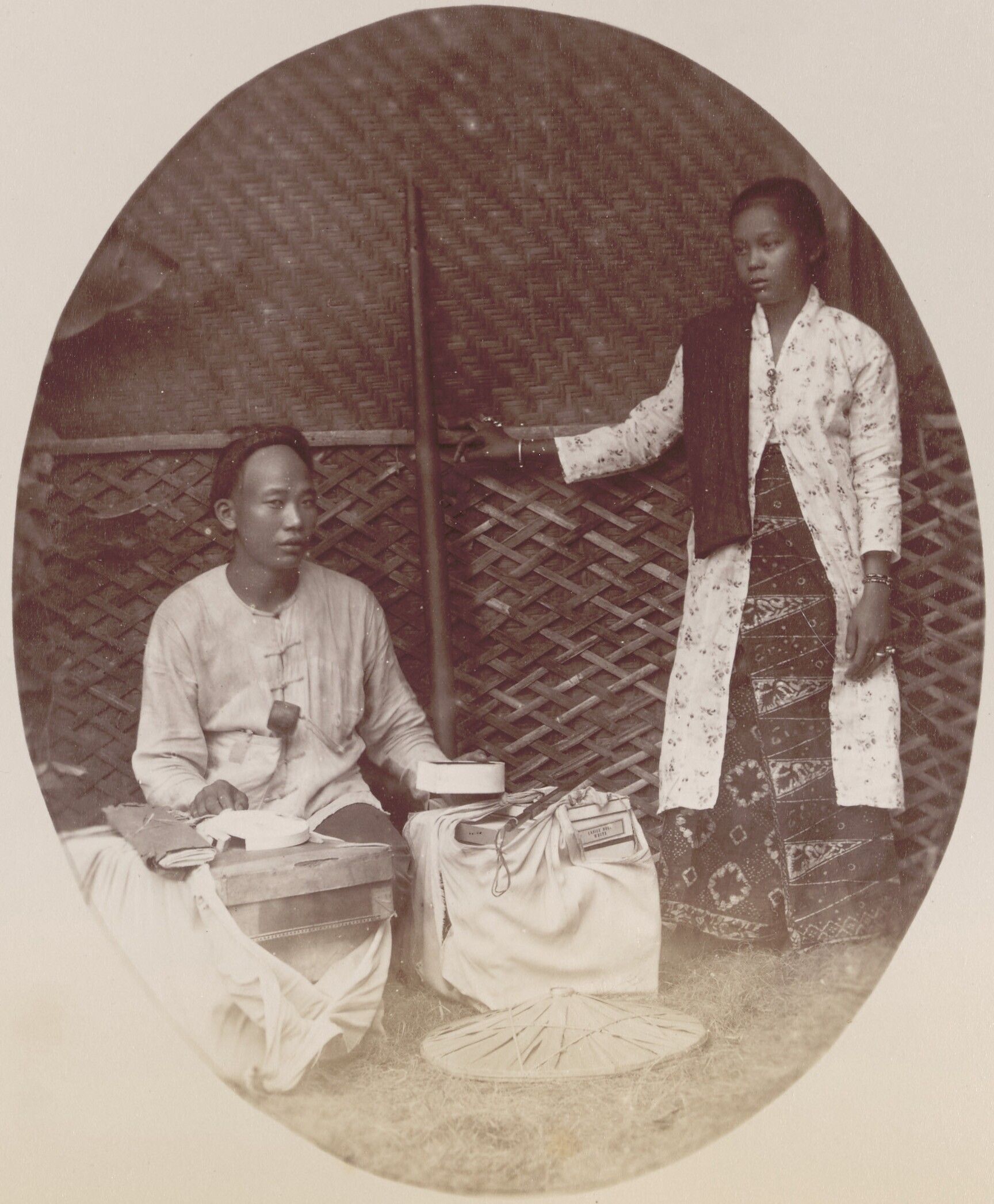 Portret van een Chinese kleermaker (?) met een Javaa...
