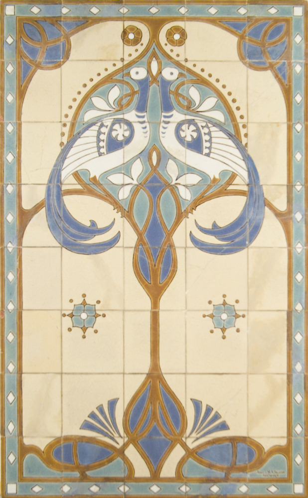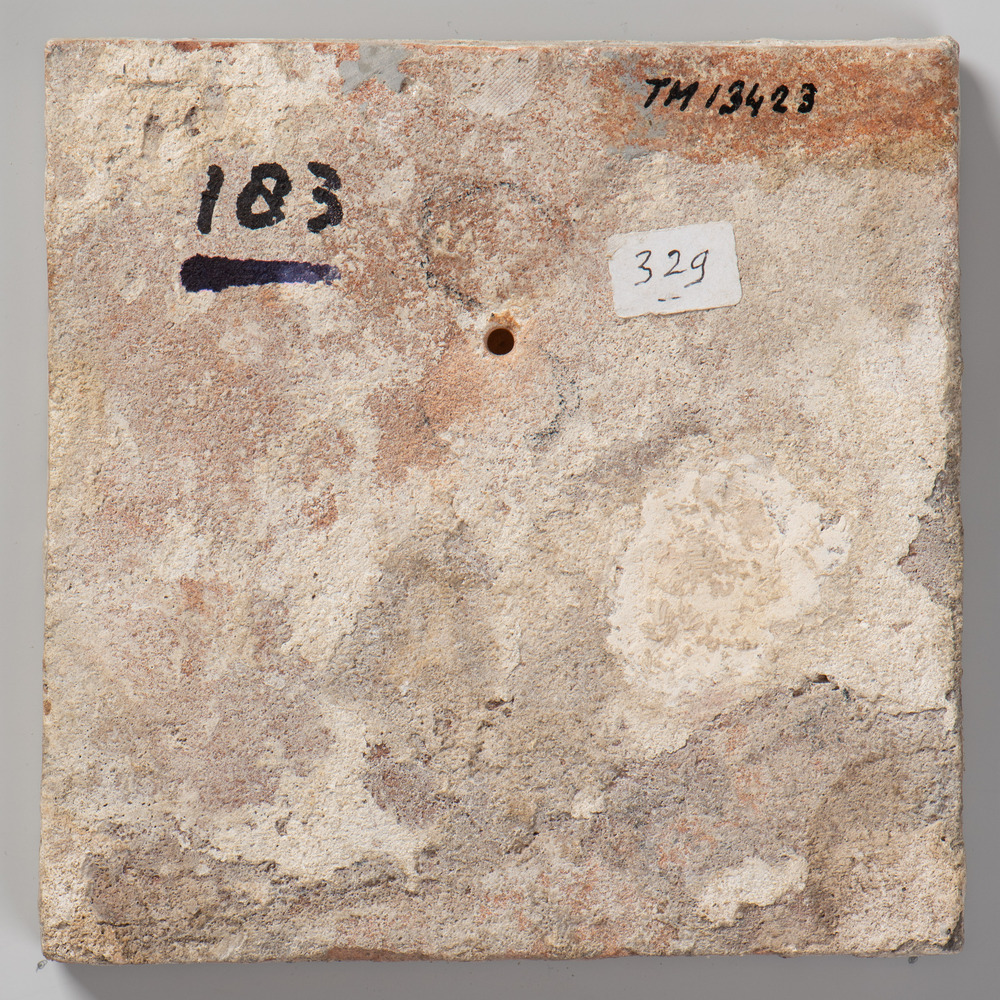 twee aan elkaar gebakken tegels van keramiek, ca. 17...