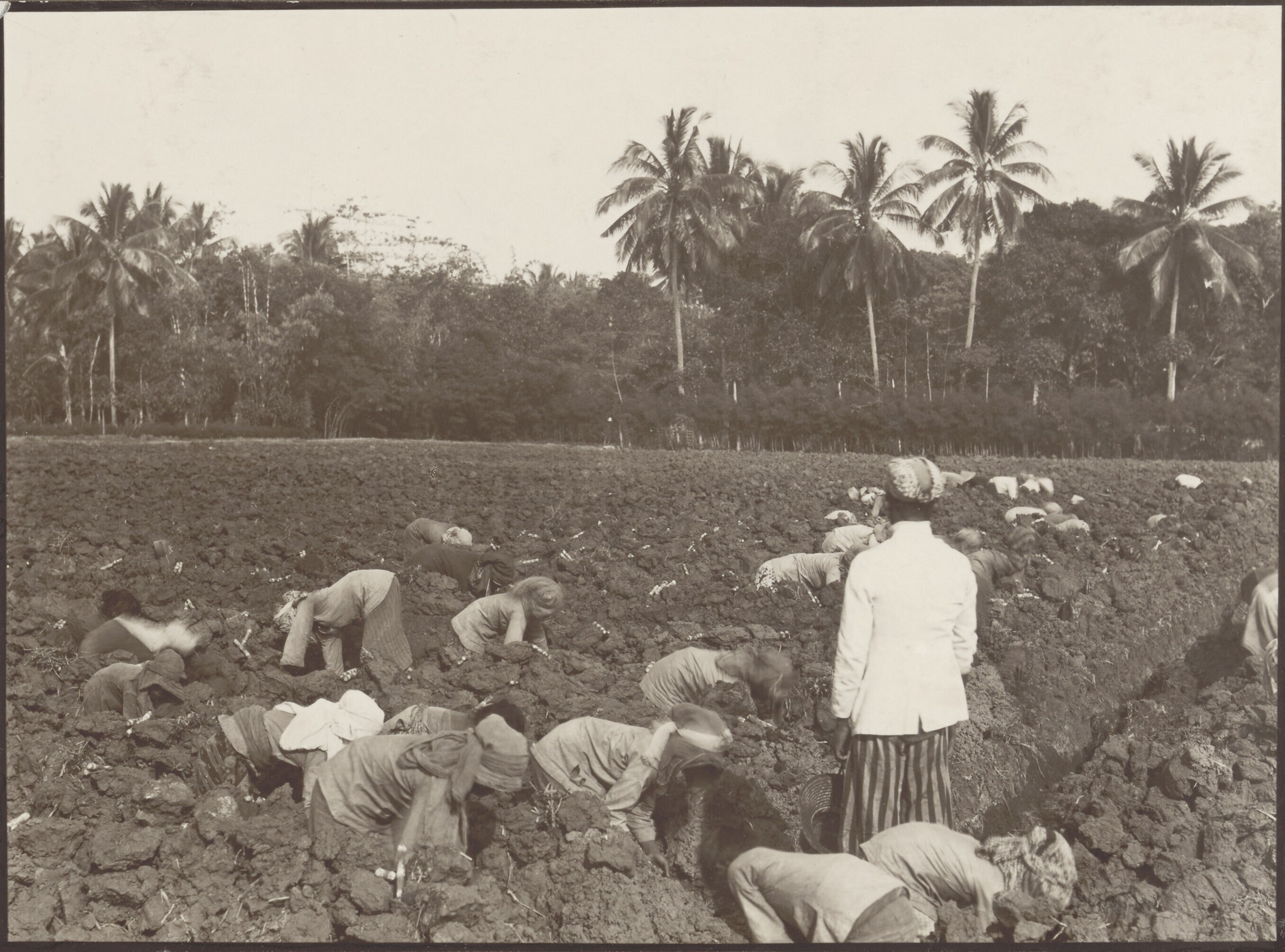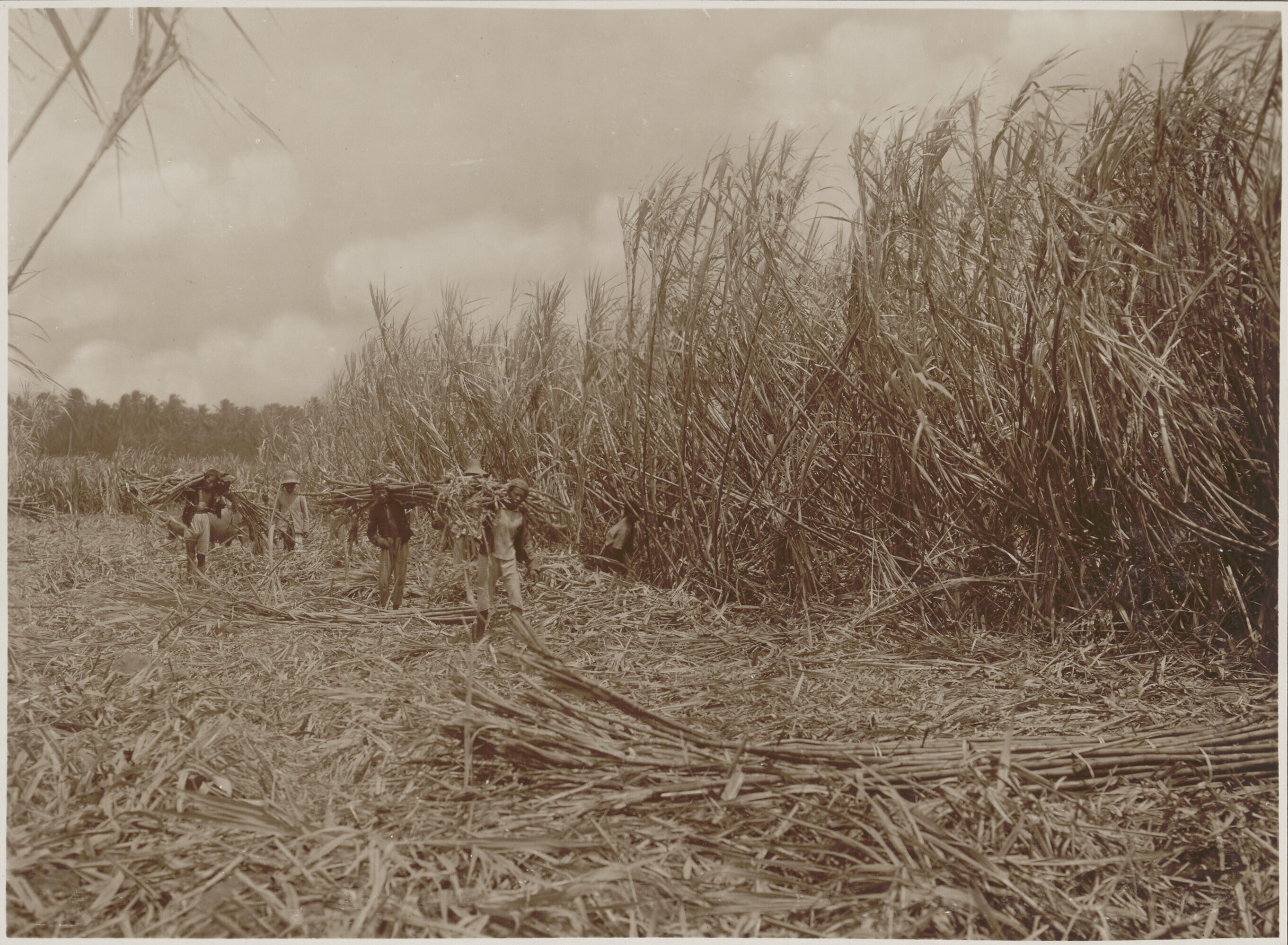 Arbeidsters in een suikerrietveld van de suikerfabri...
