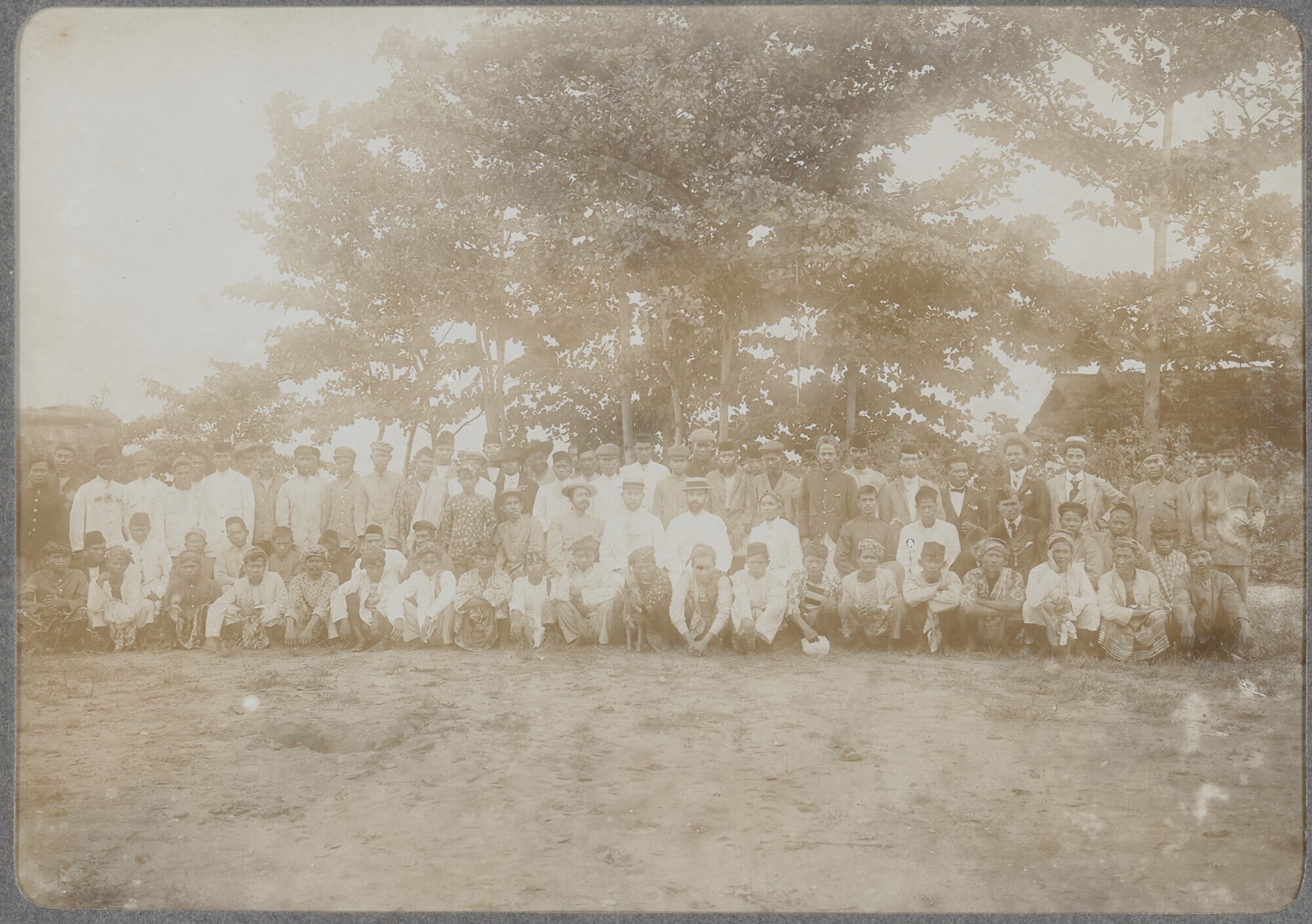 Groepsportret van dragers en deelnemers aan de Eerst...