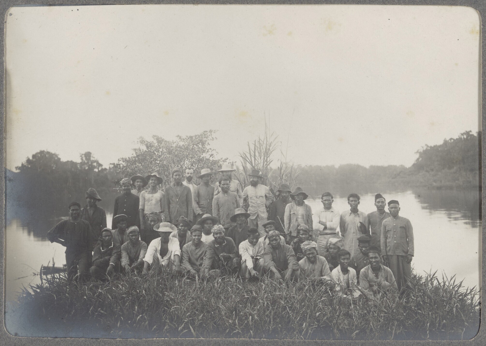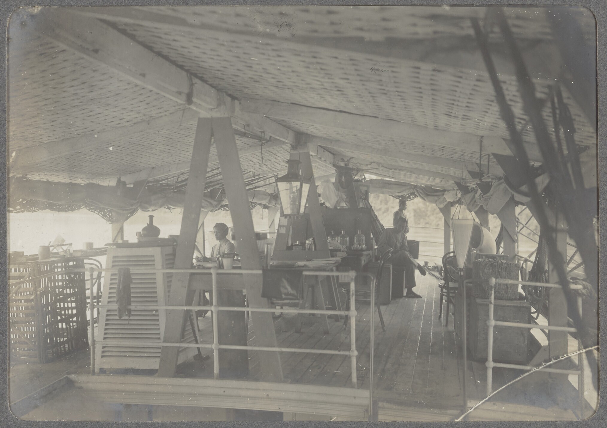 Expeditieleden op het achterdek van de 'Zwaluw'