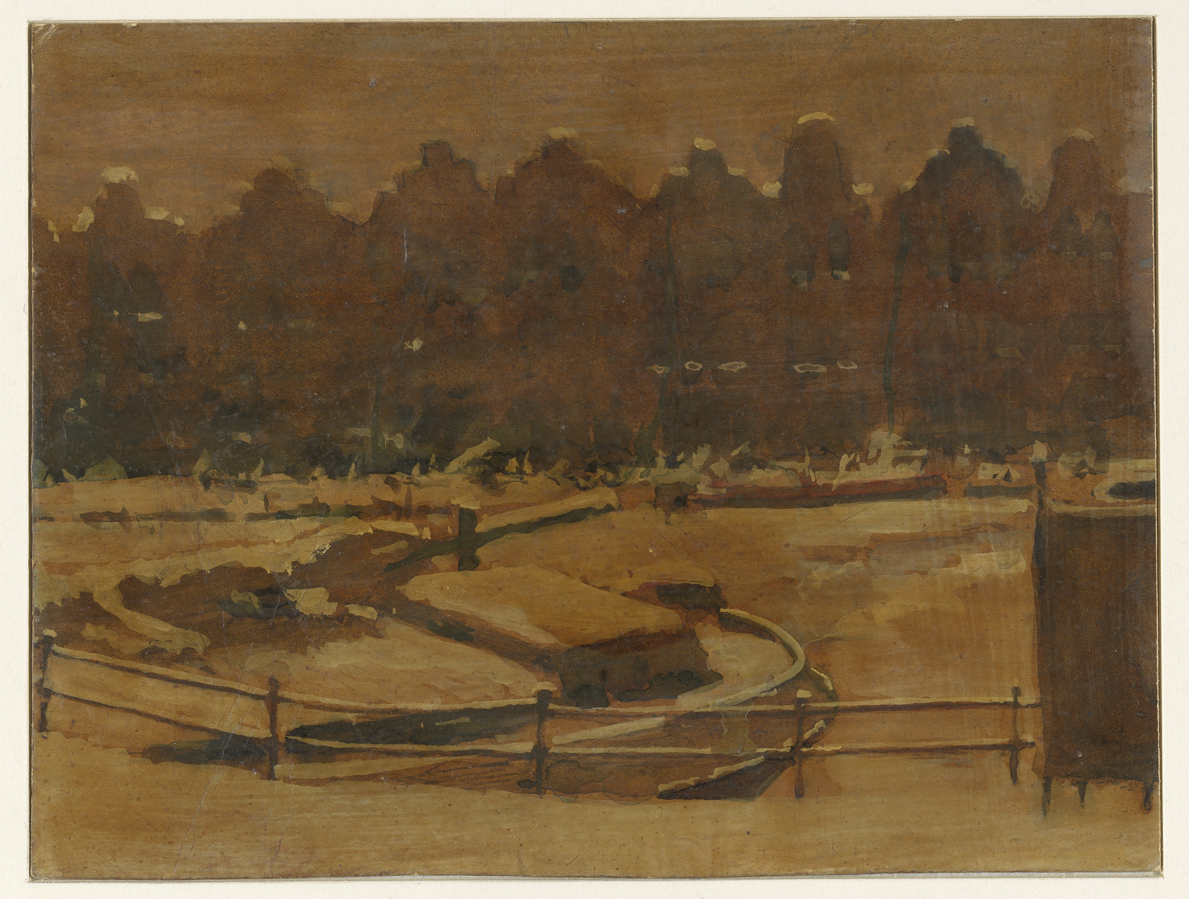 Landschap, Boitsfort, met bloeiende fruitbomen