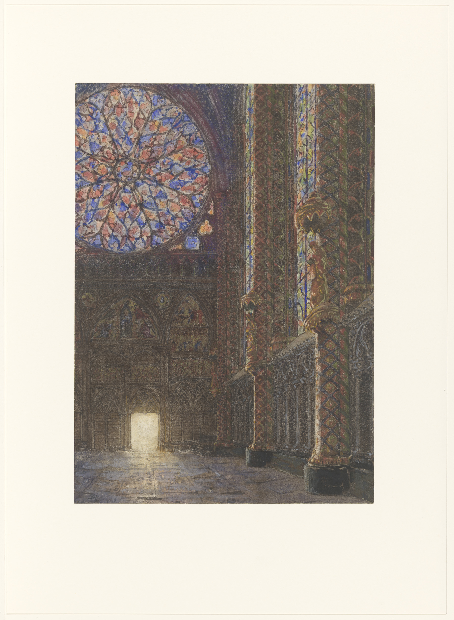 Interieur van de Sainte Chapelle, naar de ingang te ...