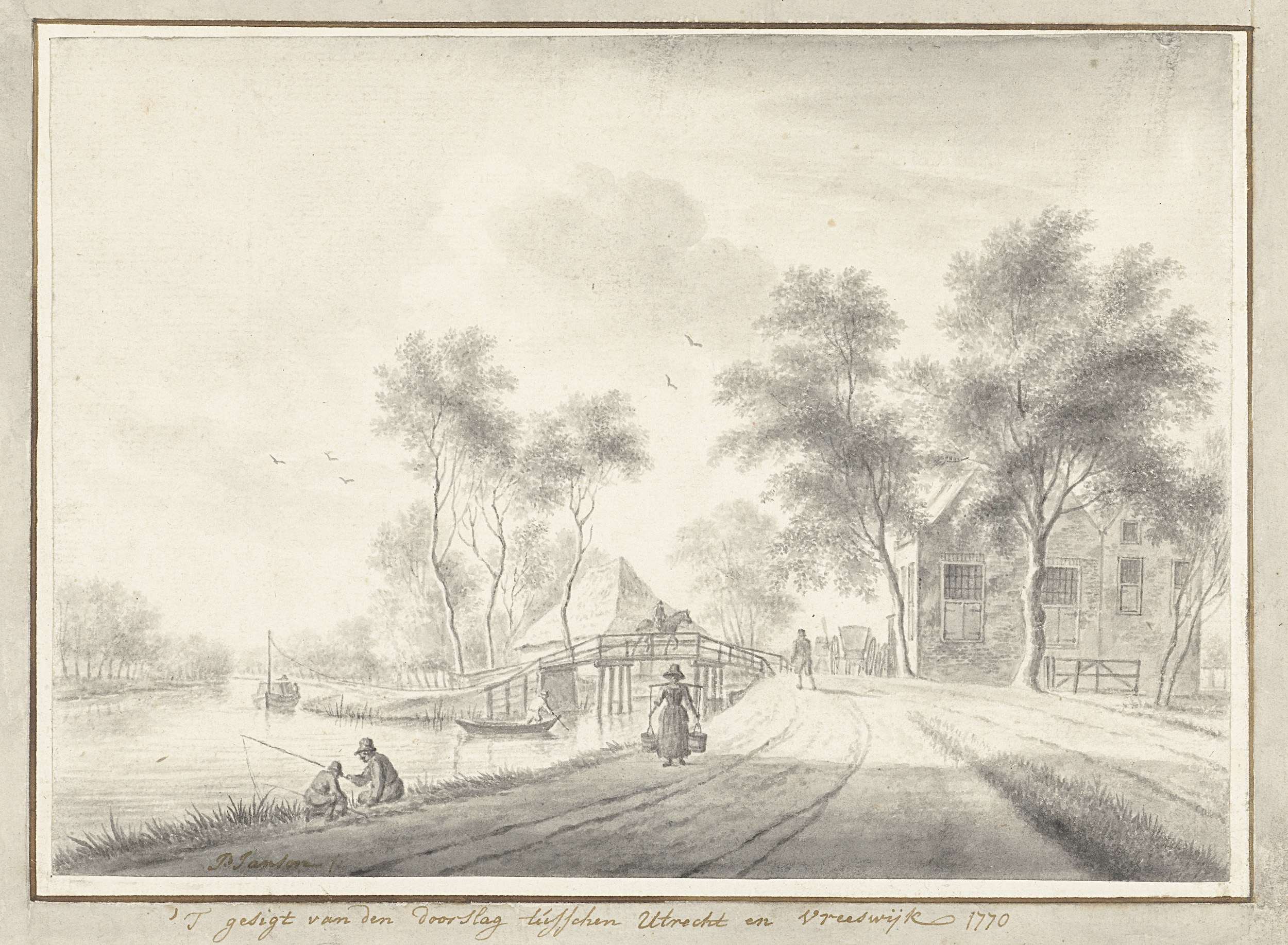 Gezicht aan een vaart met een hengelaar
