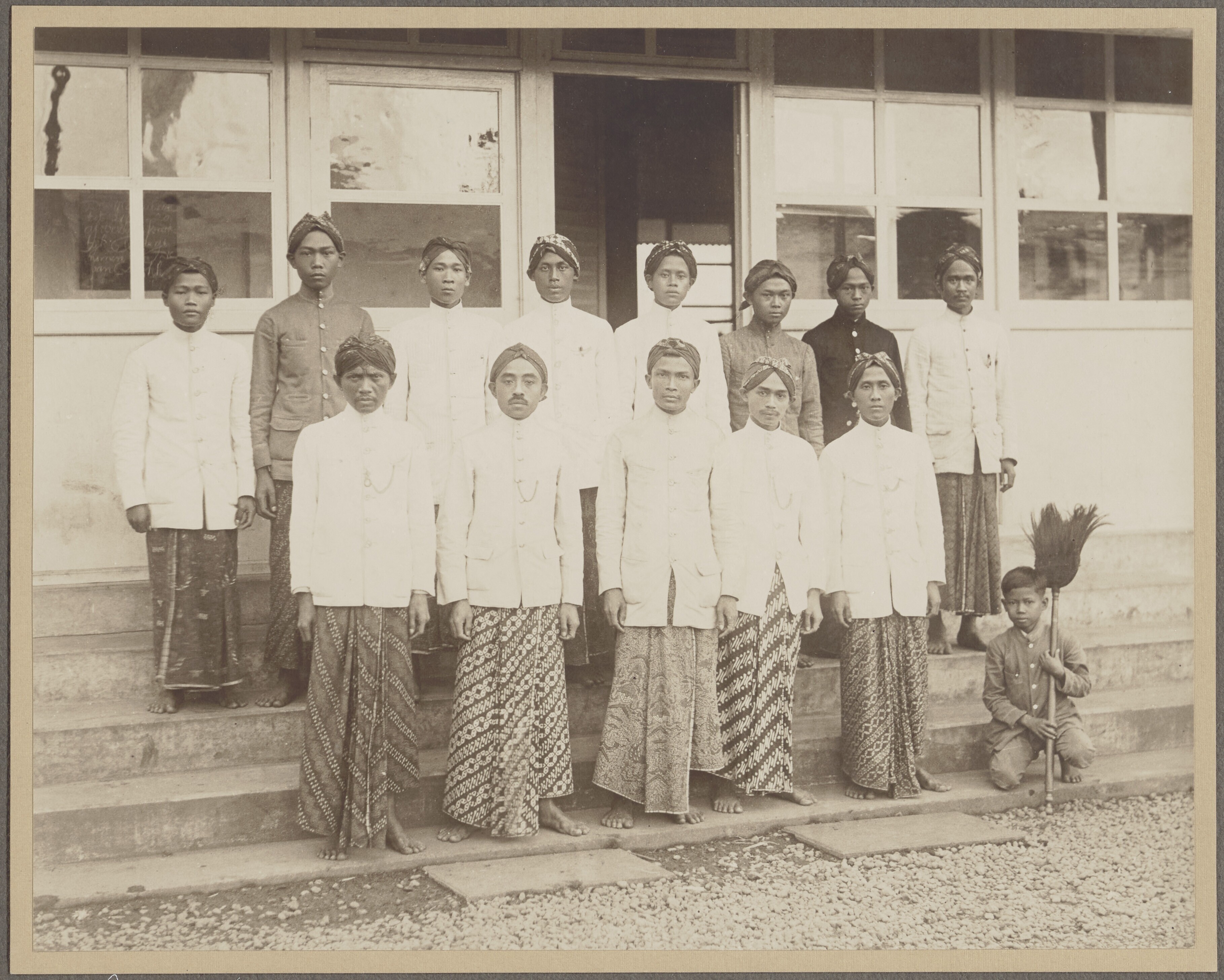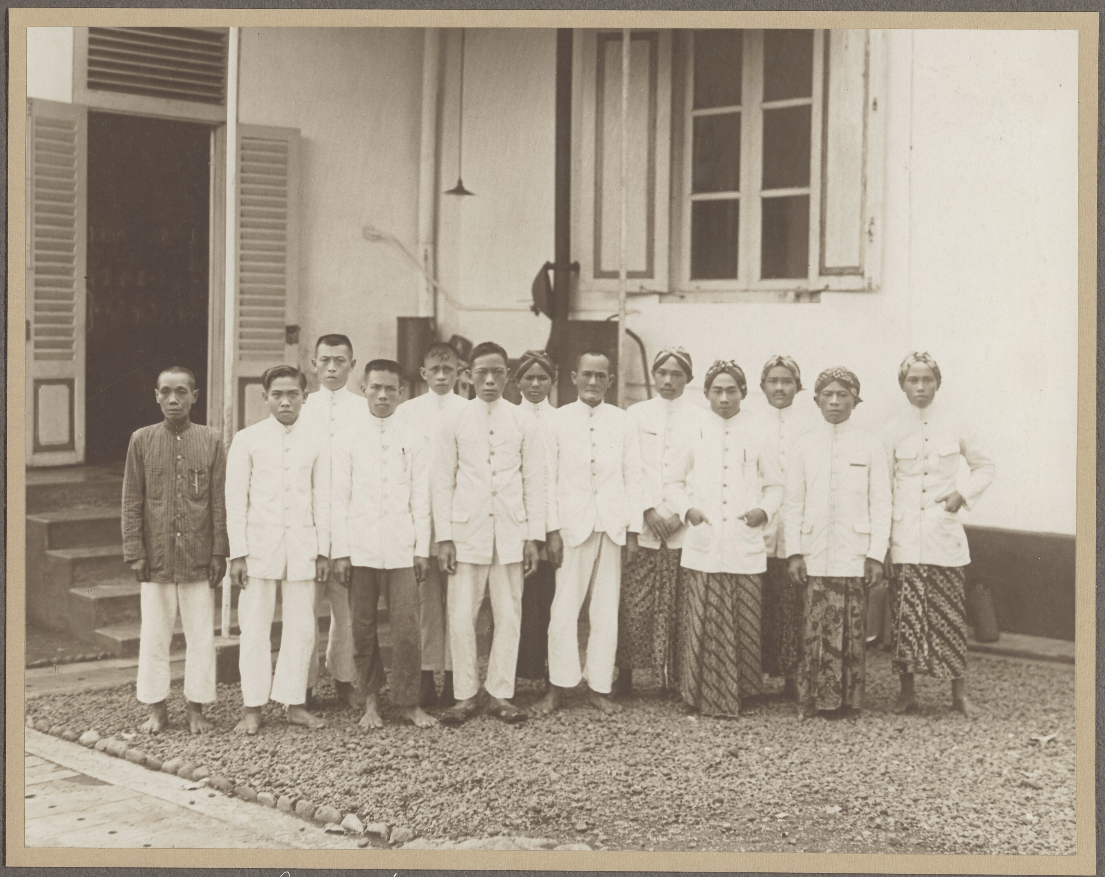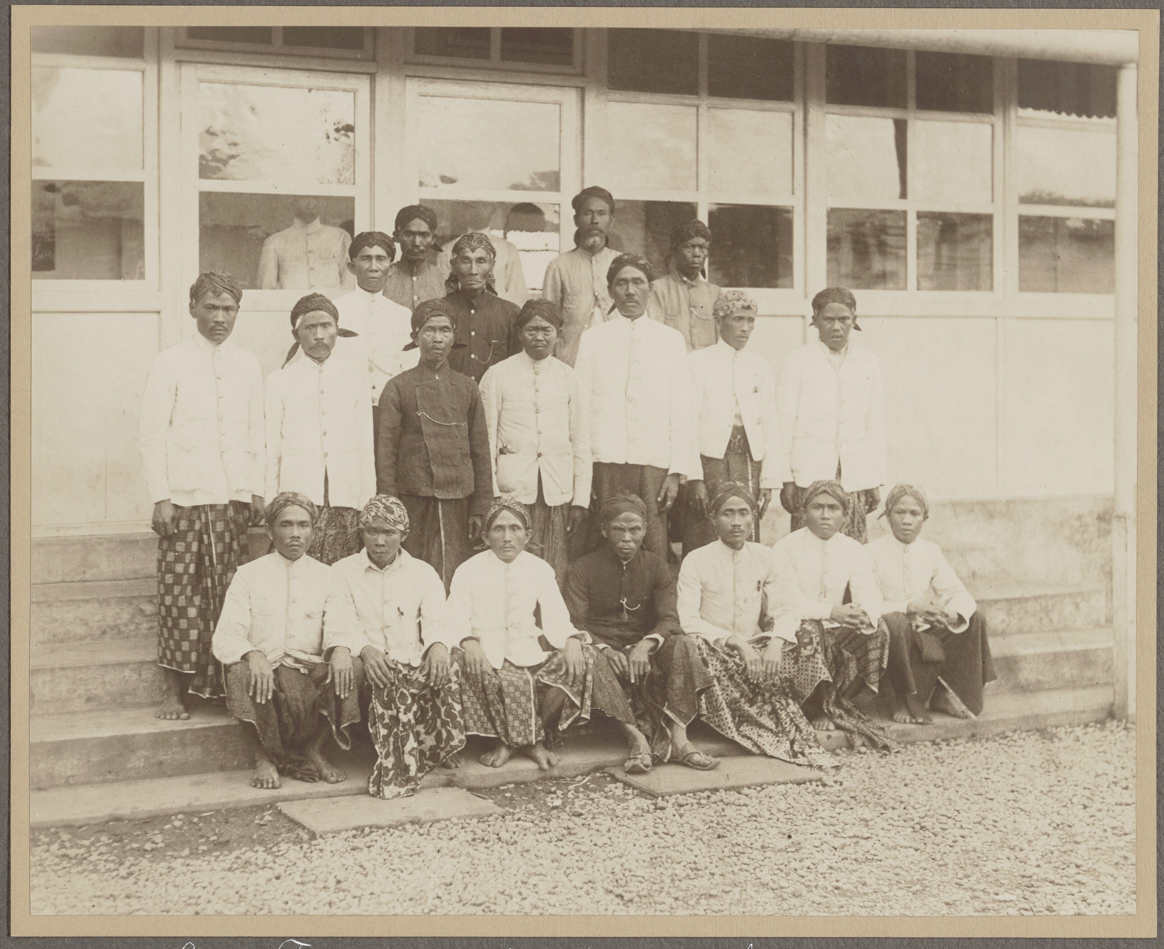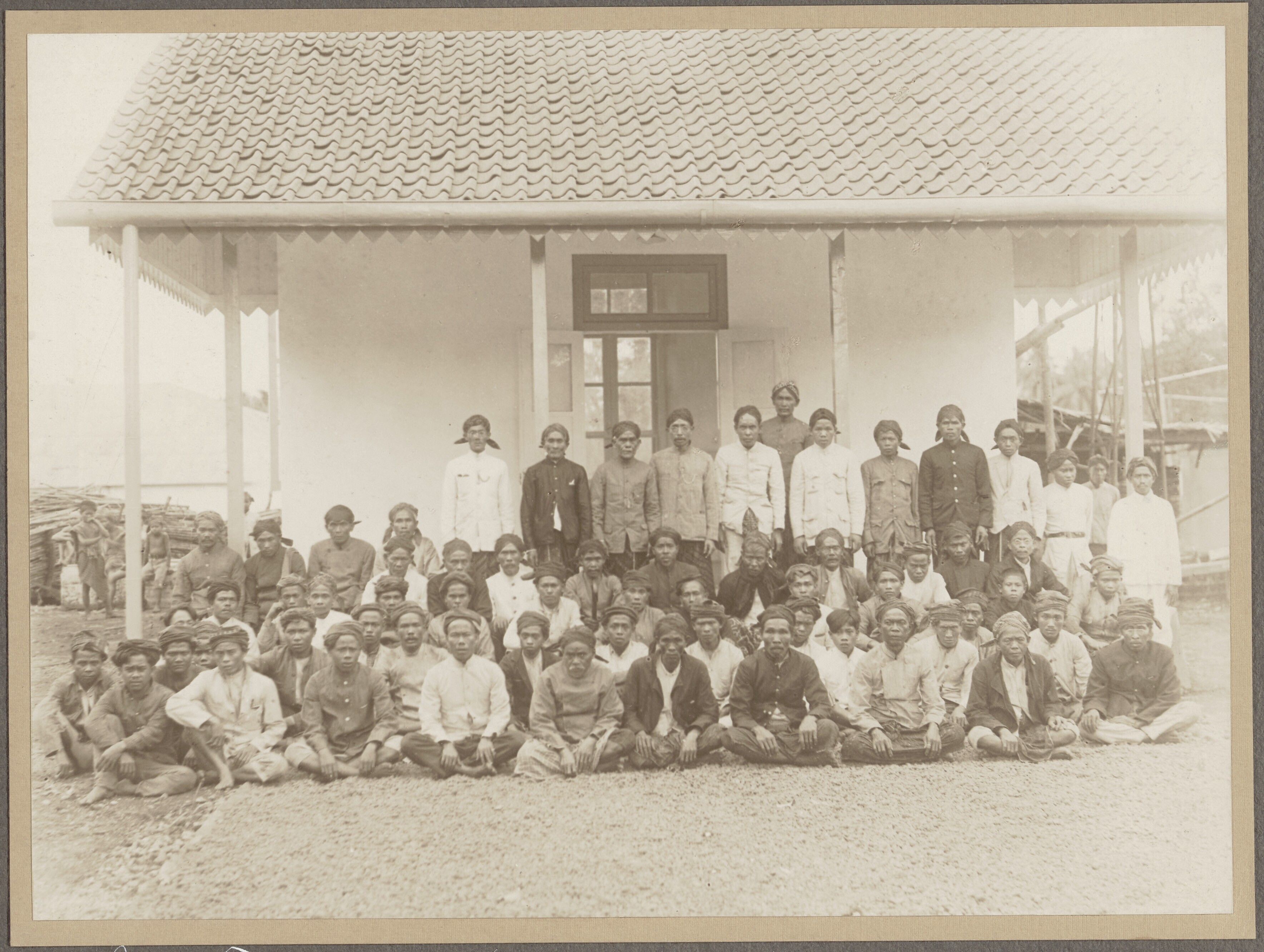 Groepsportret met tuinmandoers, wegers en de karrenm...