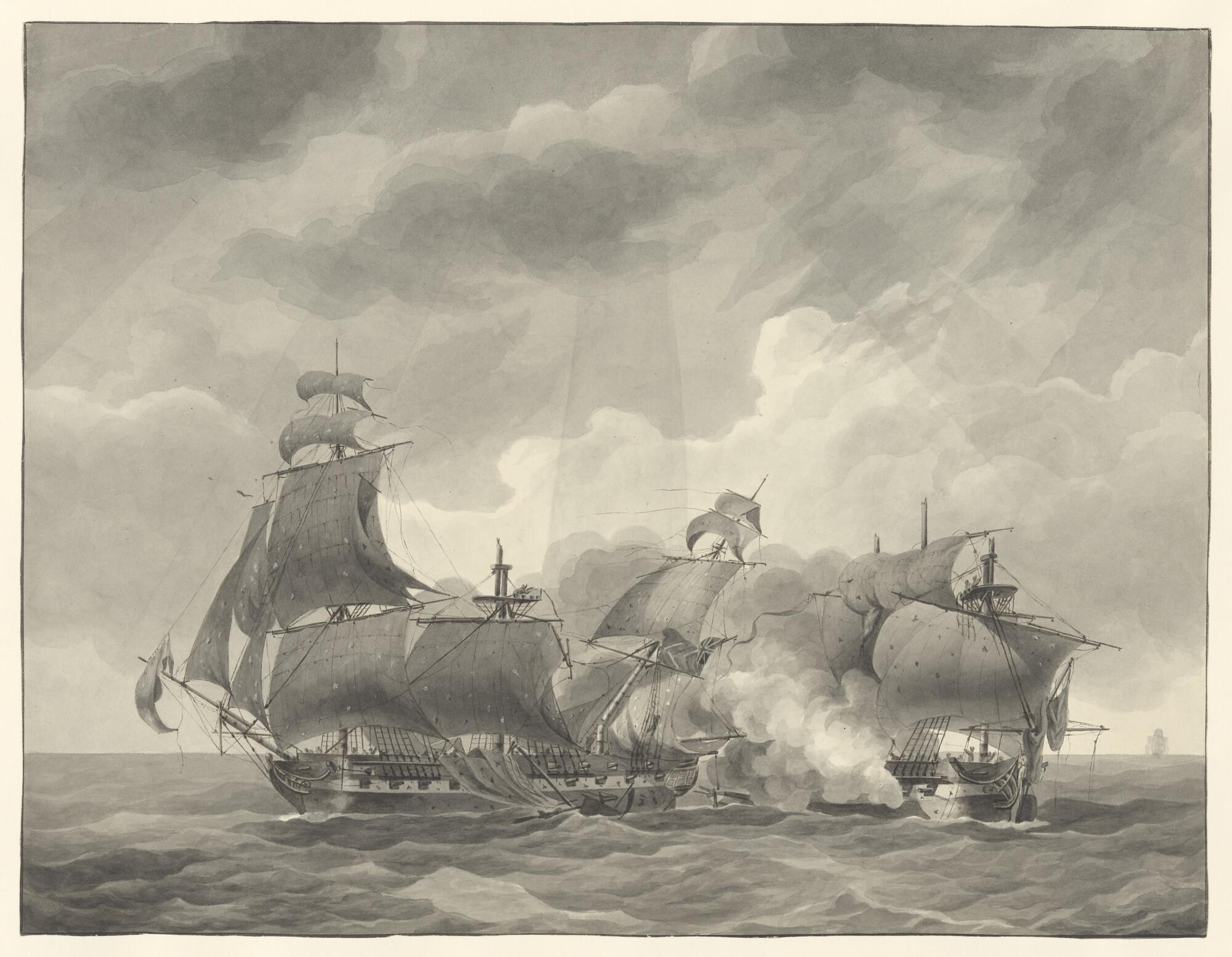 Gevecht tussen een Engels oorlogsschip en een ander ...