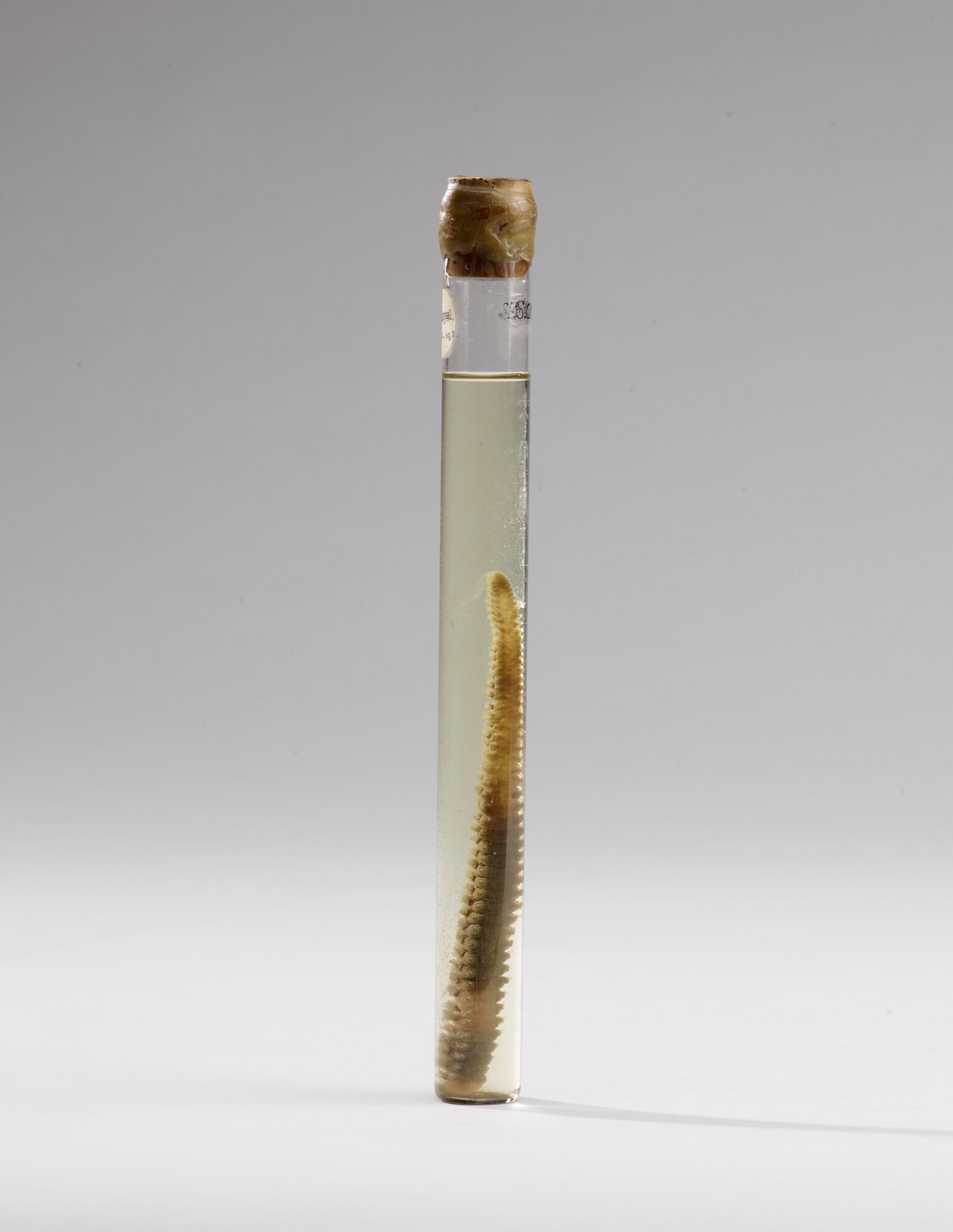 Preparaat van een zeeduizendpoot in glazen buis
