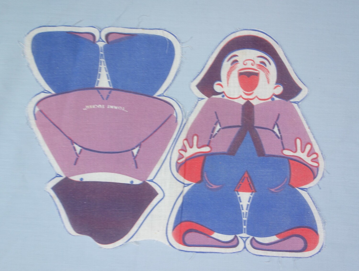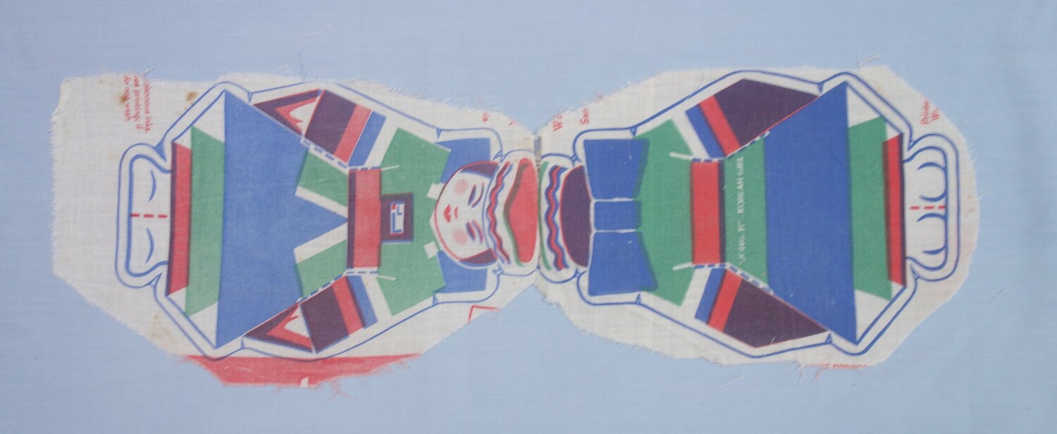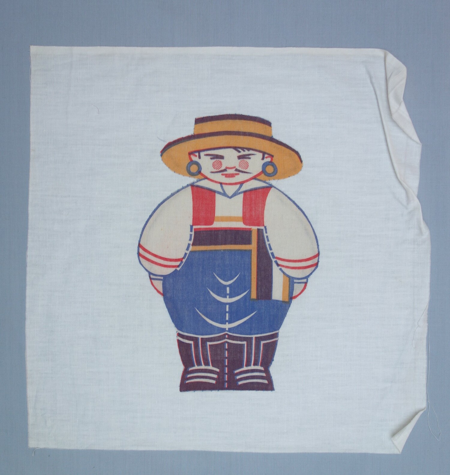 Wit katoenen borduurlapje met vijf vierkanten. 1936.