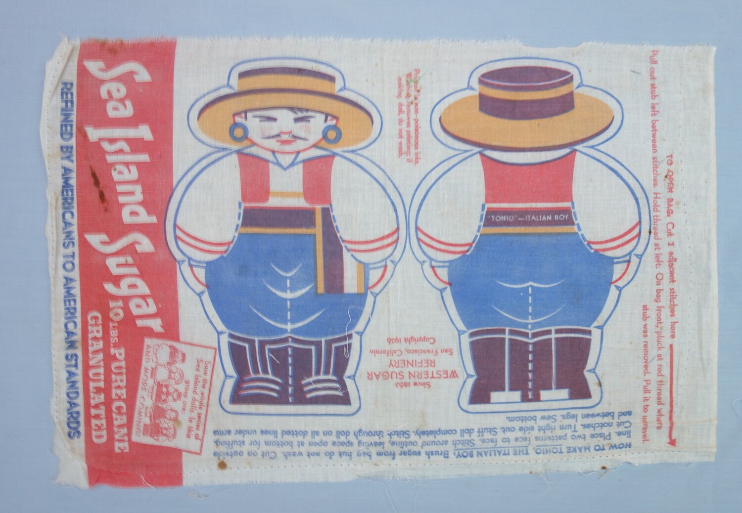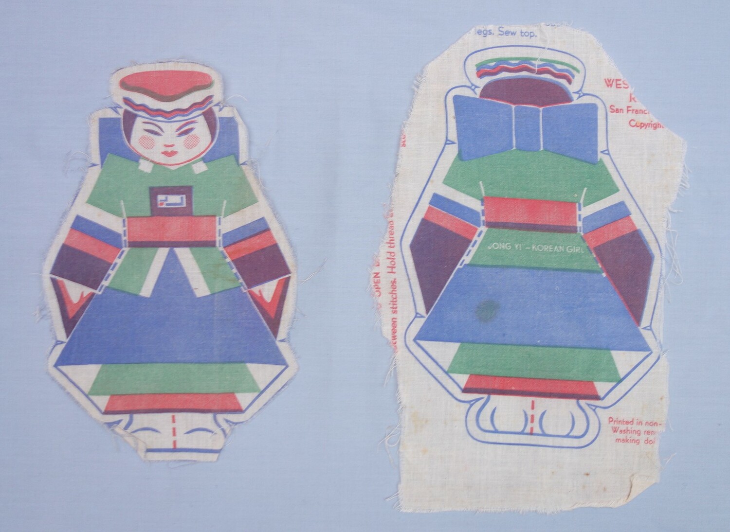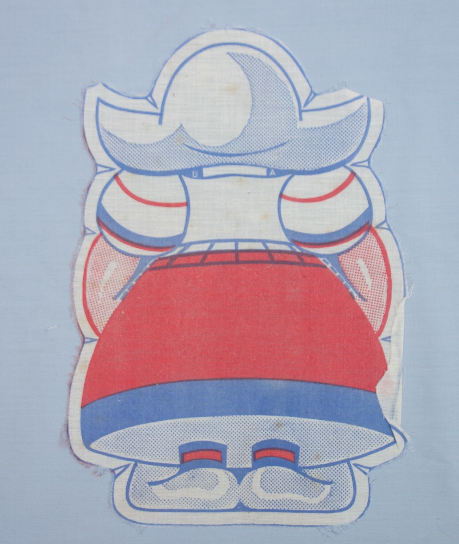 Wit katoenen borduurlapje met vijf vierkanten. 1936.