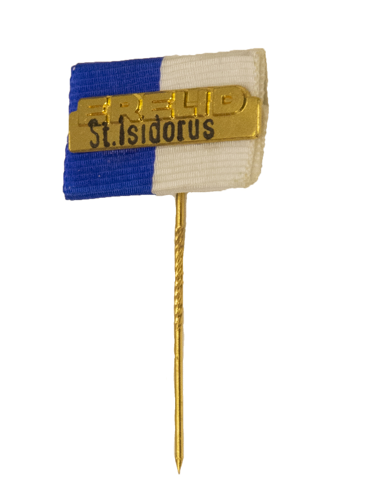 Gedenkspeld van metaal met de tekst 'Erelid St. Isid...
