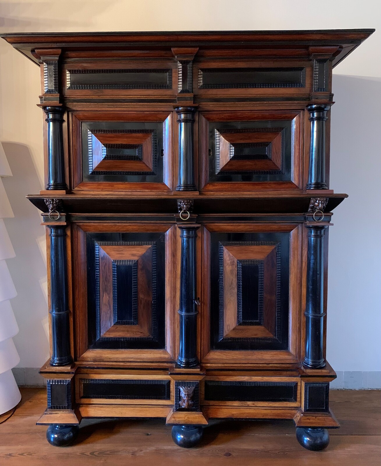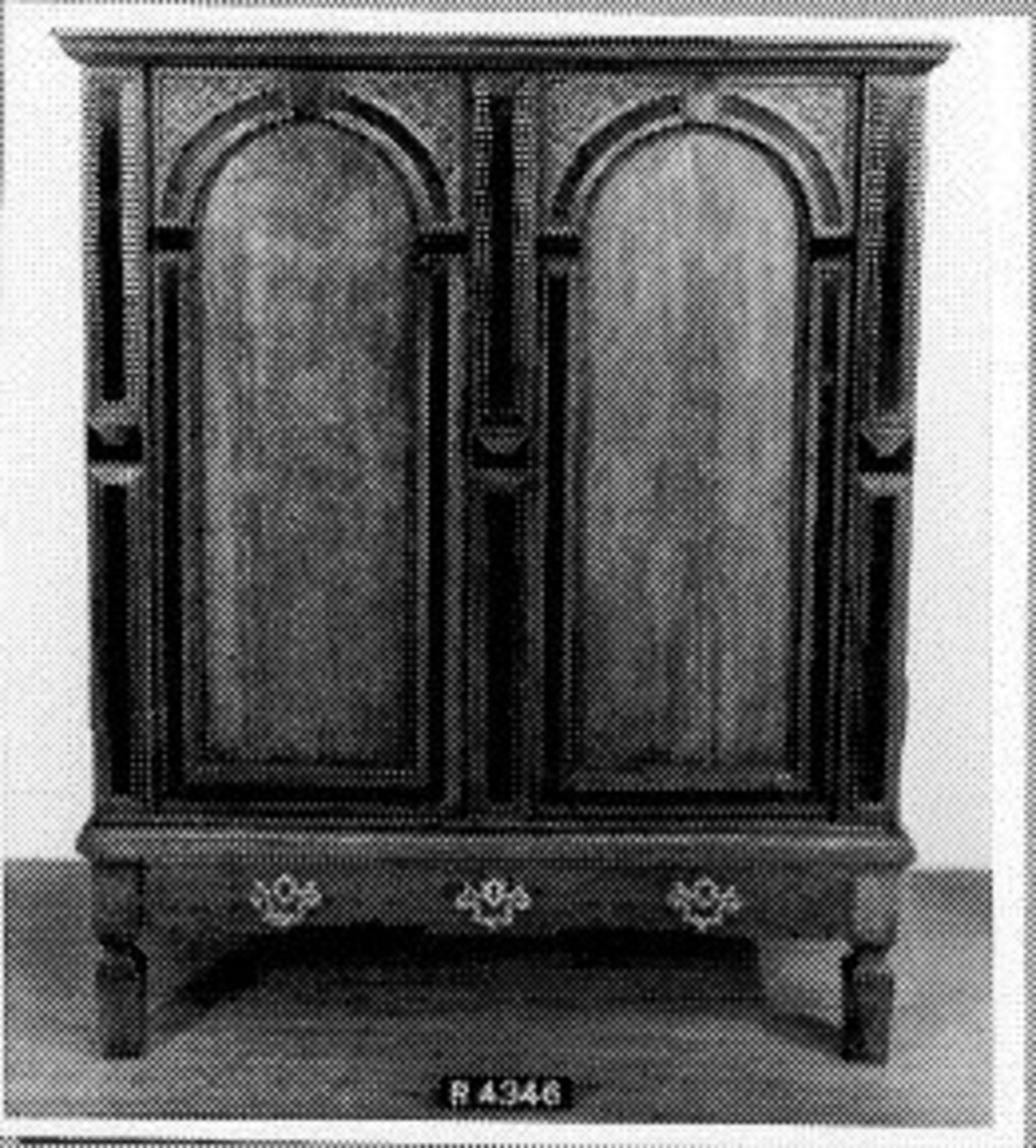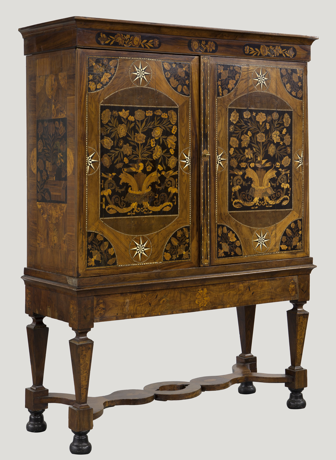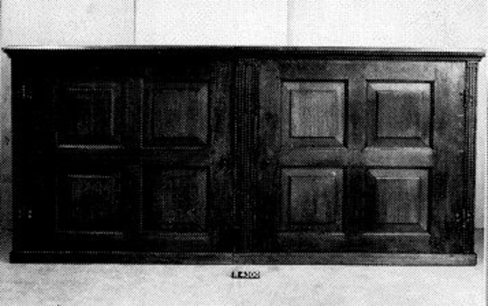 diverse houtsoorten belijmd met padoek- en cederhout, versierd met beschilderde wit marmeren plaquettes (1)