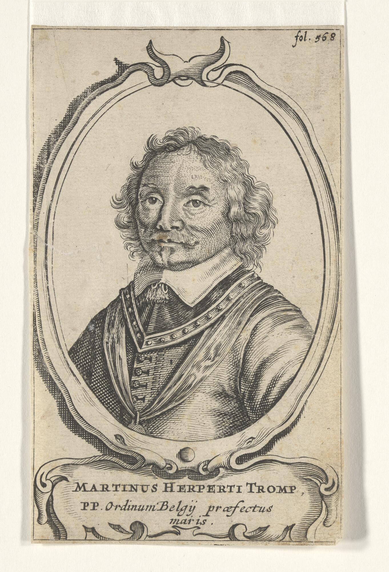 Portret van Maarten Harpertsz Tromp in ovalen lijst ...