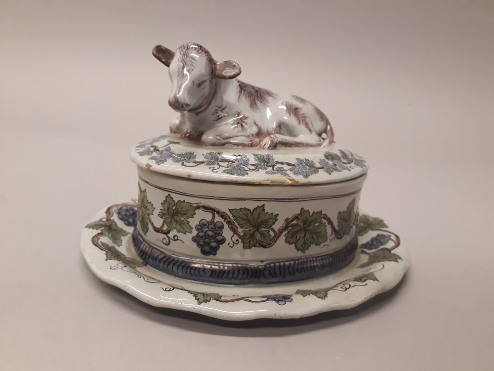 Vloertegel van keramiek, slibdecor, voorstellende ee...