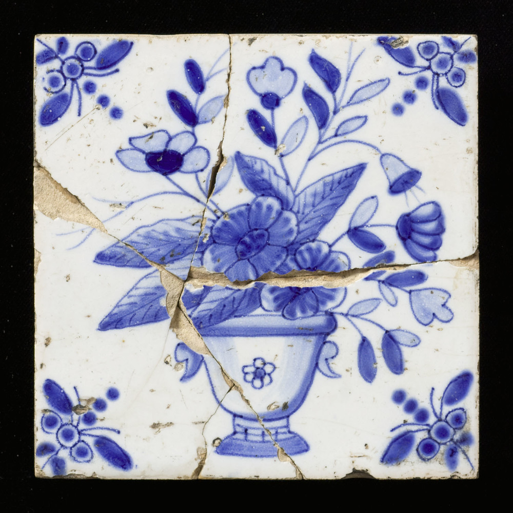 Tegel van keramiek, tinglazuur, voorstellende een bl...