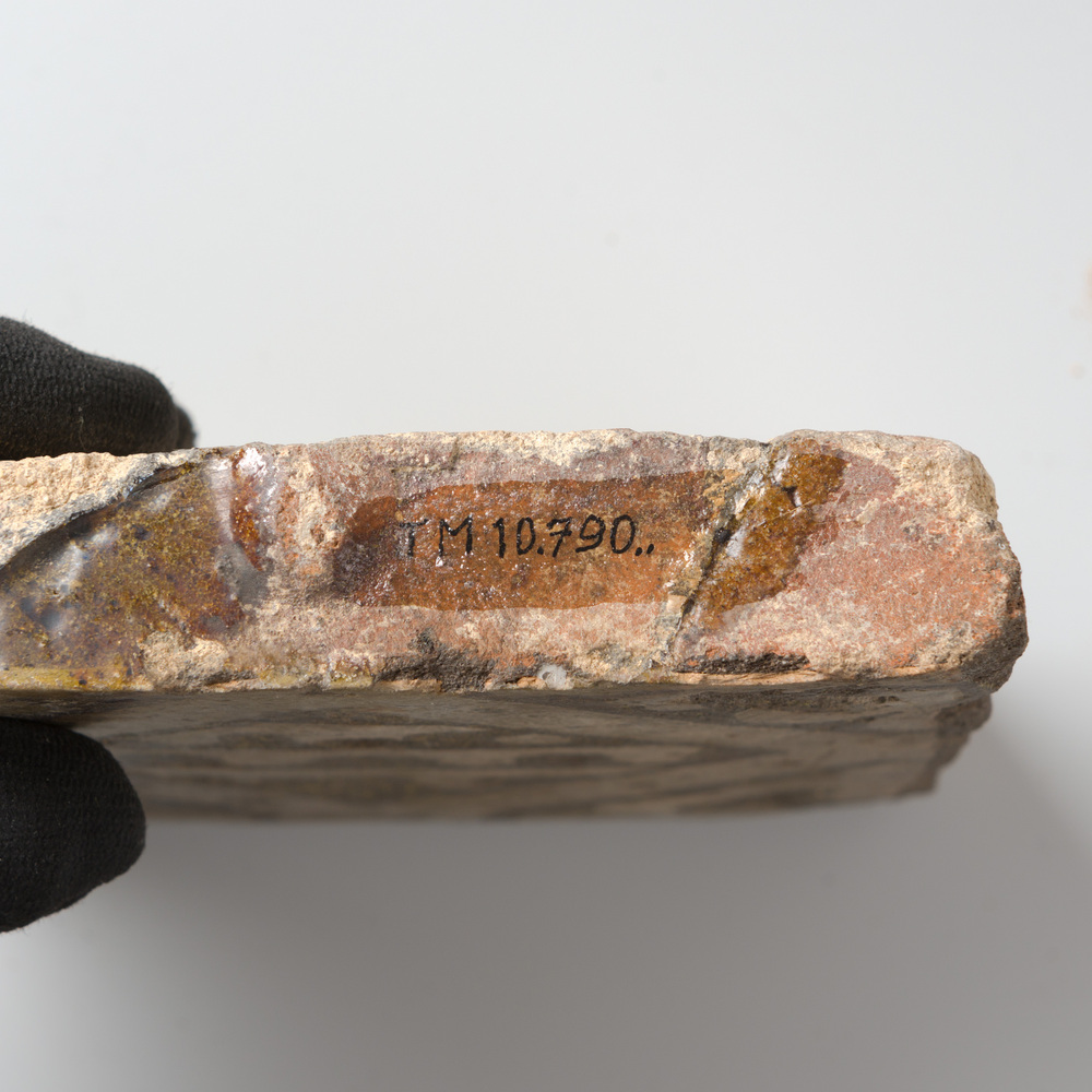 Tegel van keramiek, tinglazuur, voorstellende een la...