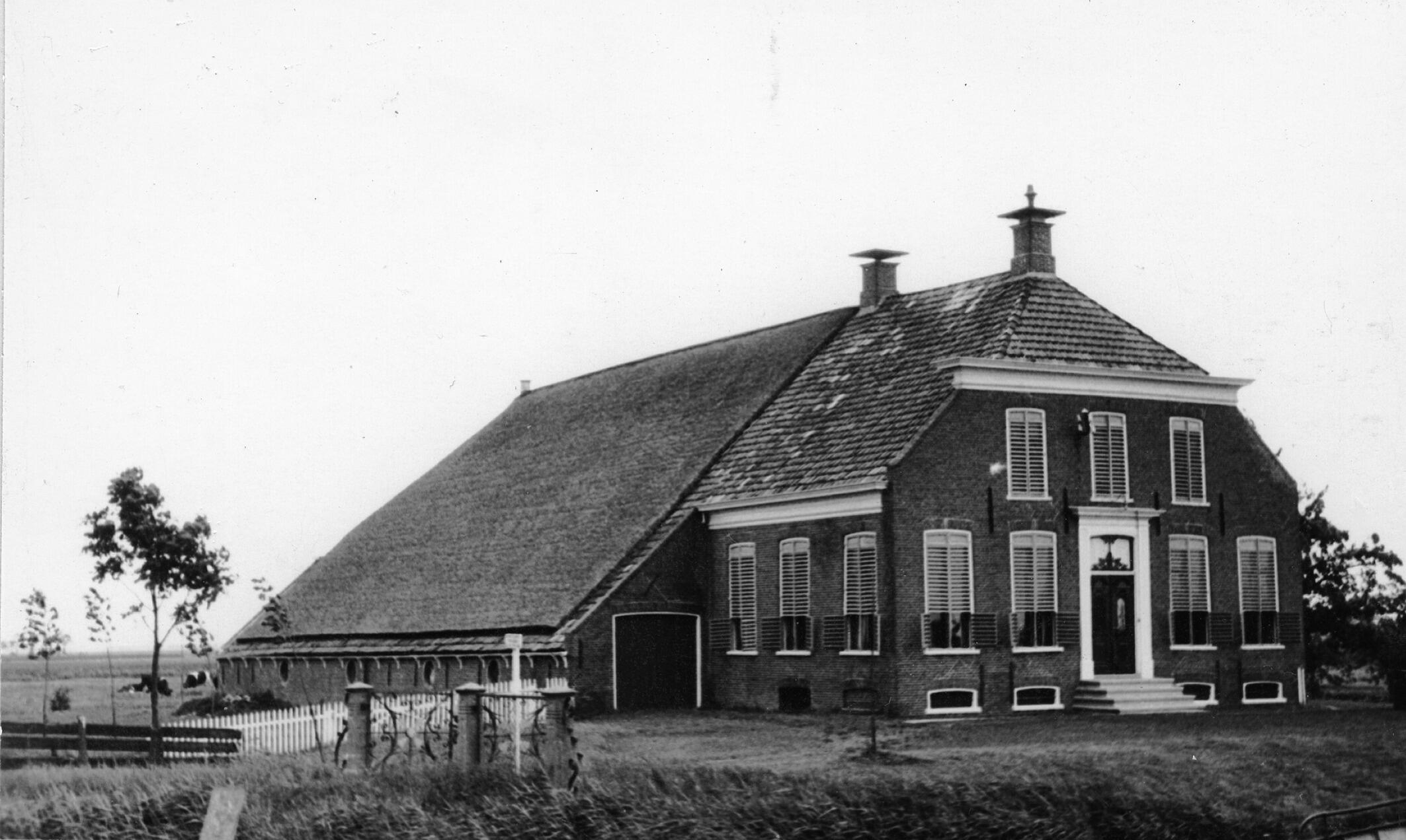 Kop-hals-rompboerderij, Wirdum, 1936 (zwart-wit nega...