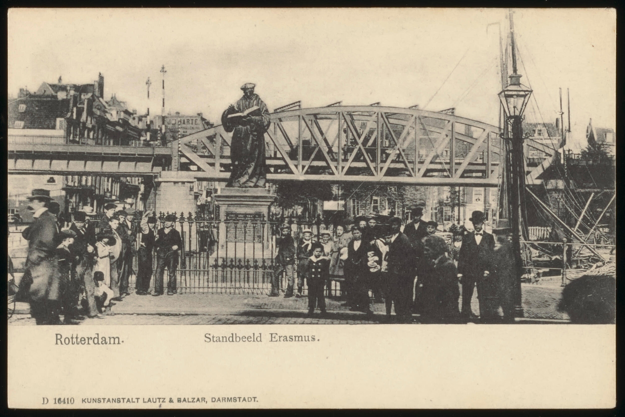 Rotterdam - Standbeeld Erasmus (ansichtkaart)