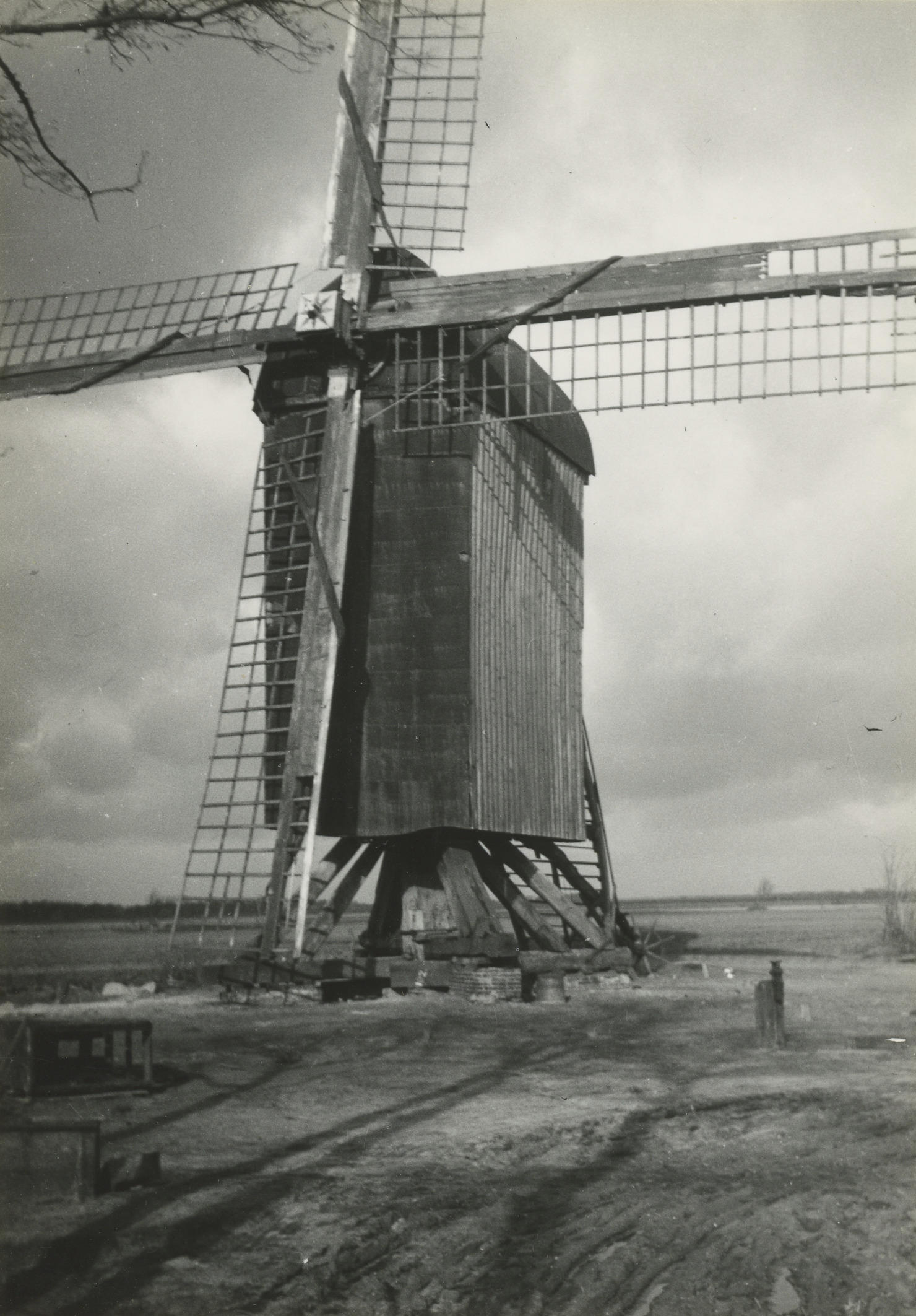Standerdmolen, Mussel (Groningen) (zwart-wit foto)
