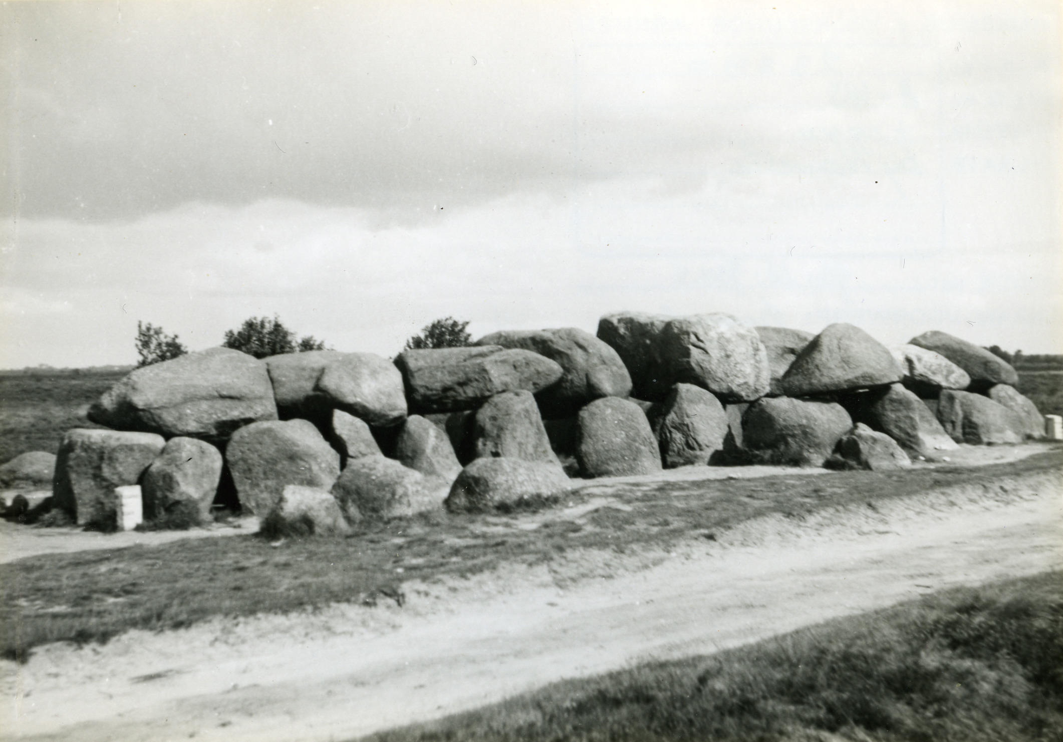 Hunebed bij Havelte, circa 1940 (zwart-wit foto)