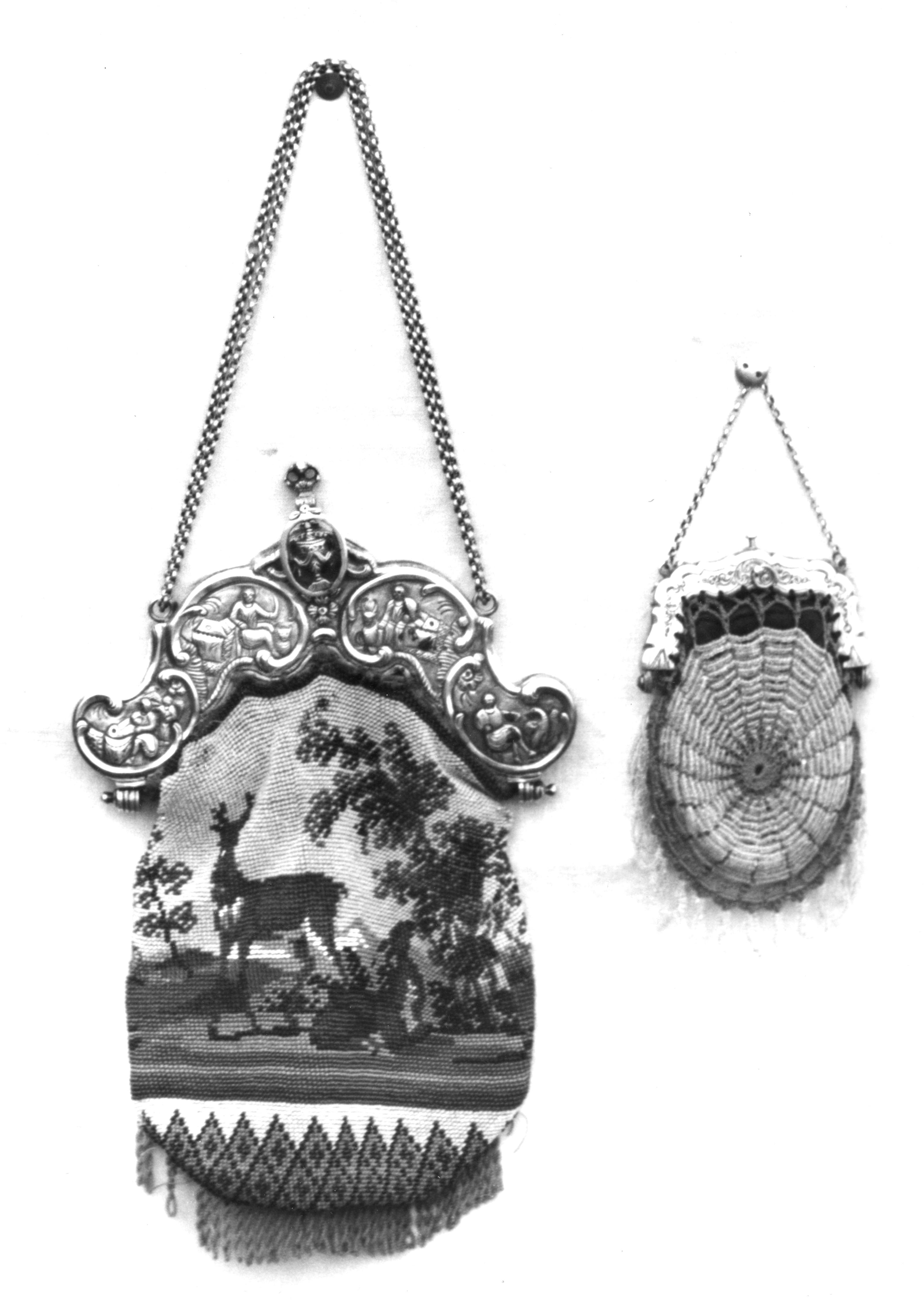 Twee kralentassen uit Workum, 1944 (zwart-wit foto)