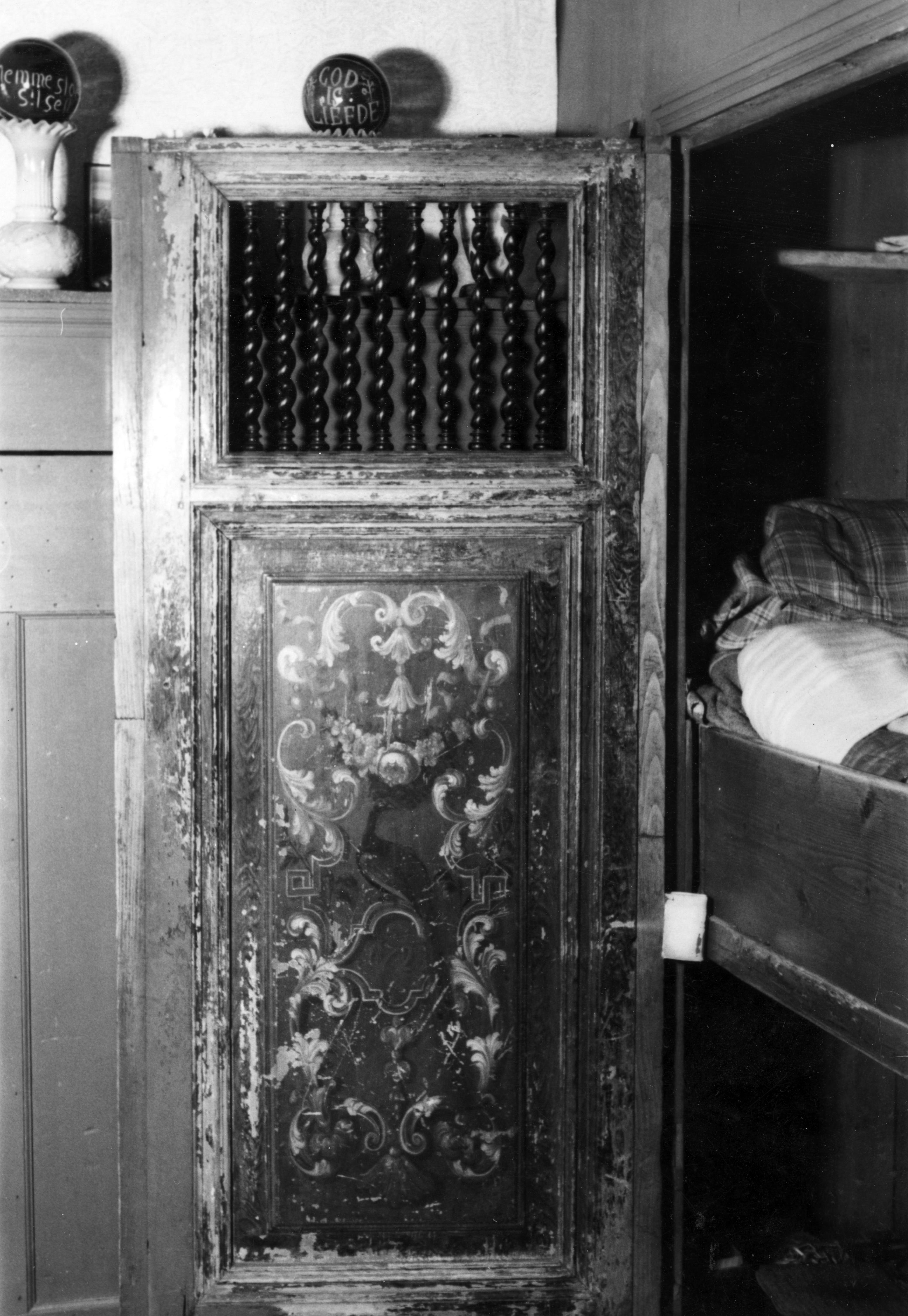 Beschilderde bedstededeur, Molkwerum, 1944 (zwart-wi...