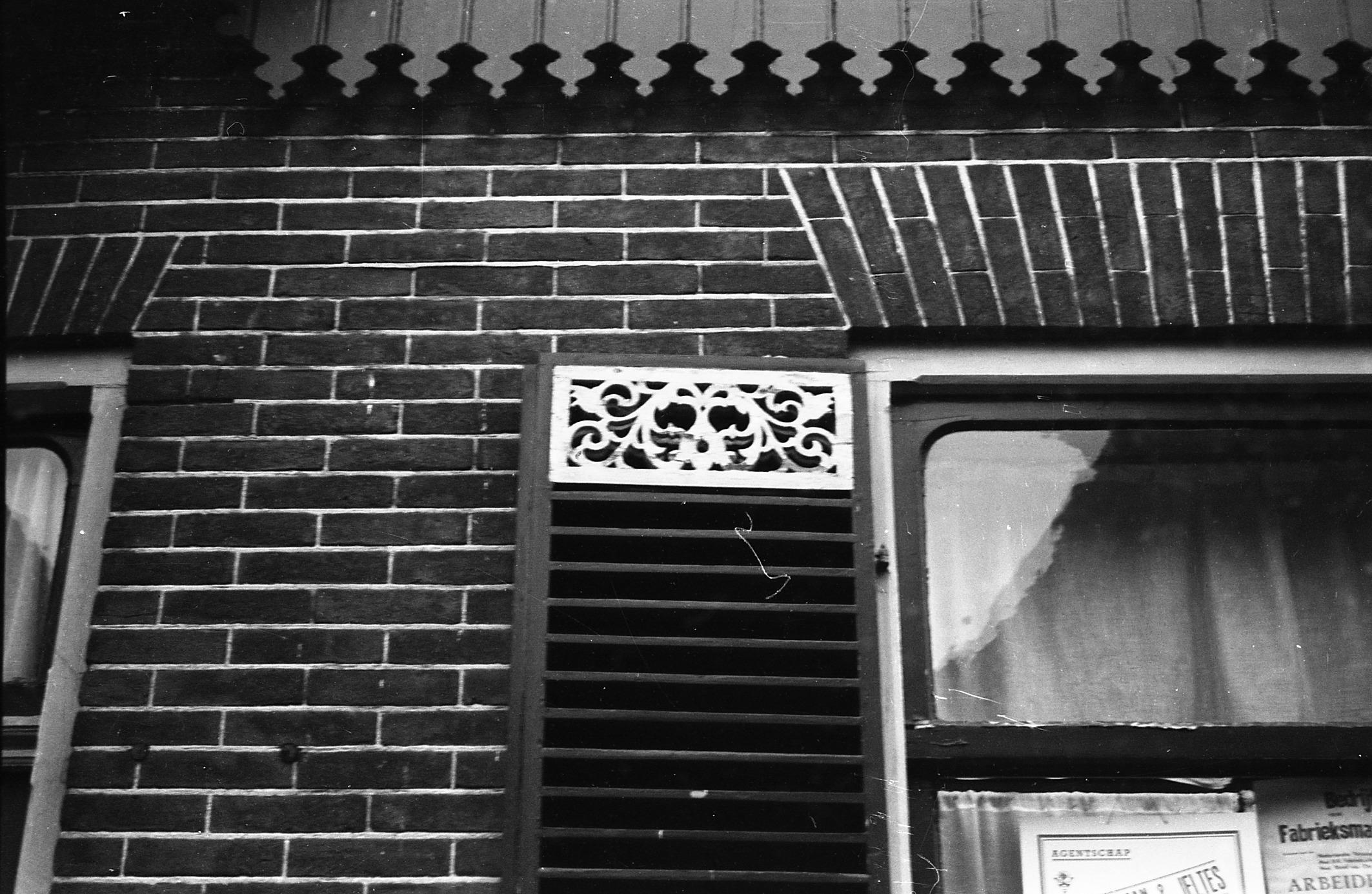 Paneeltje in een vensterluik, Krommenie, 1945 (zwart...