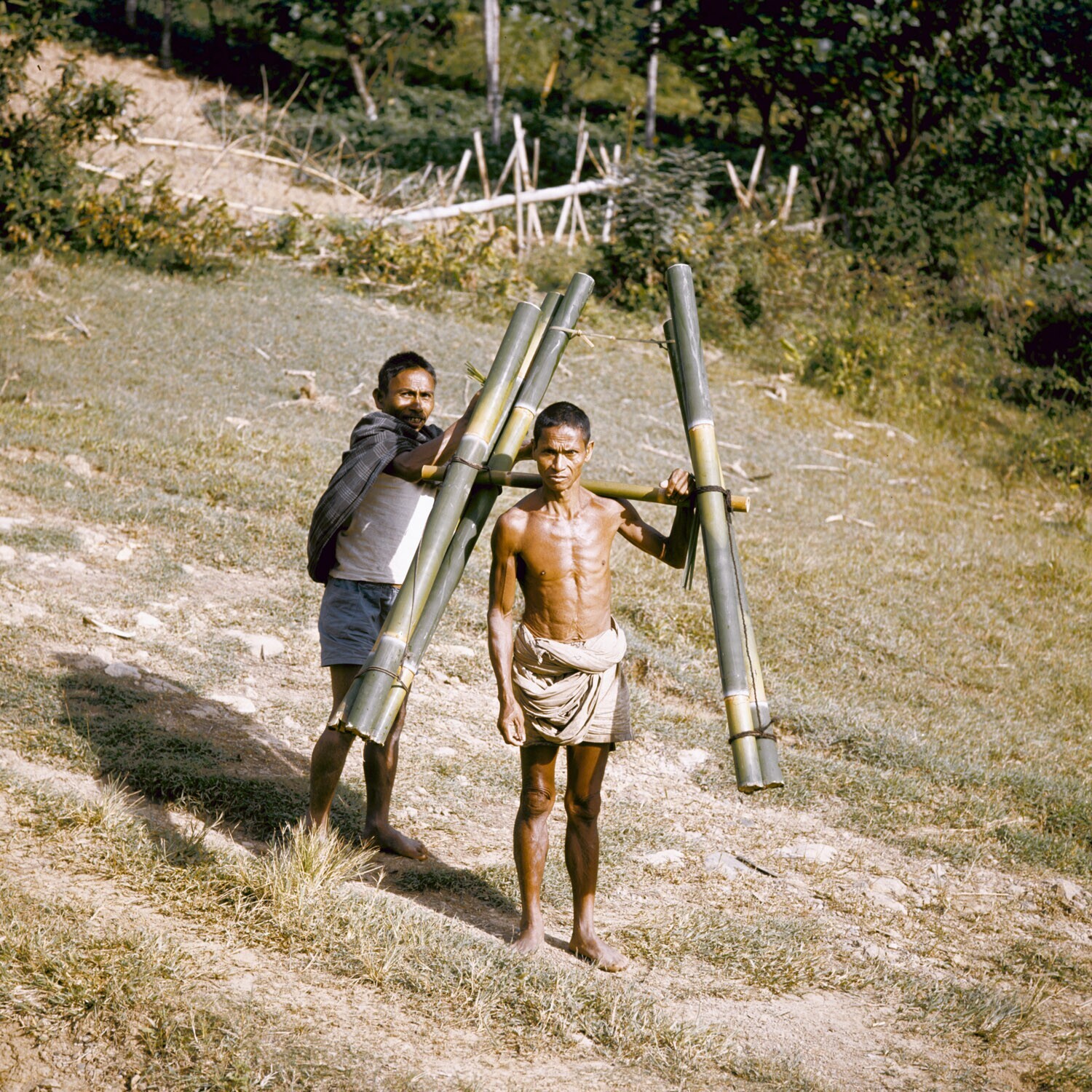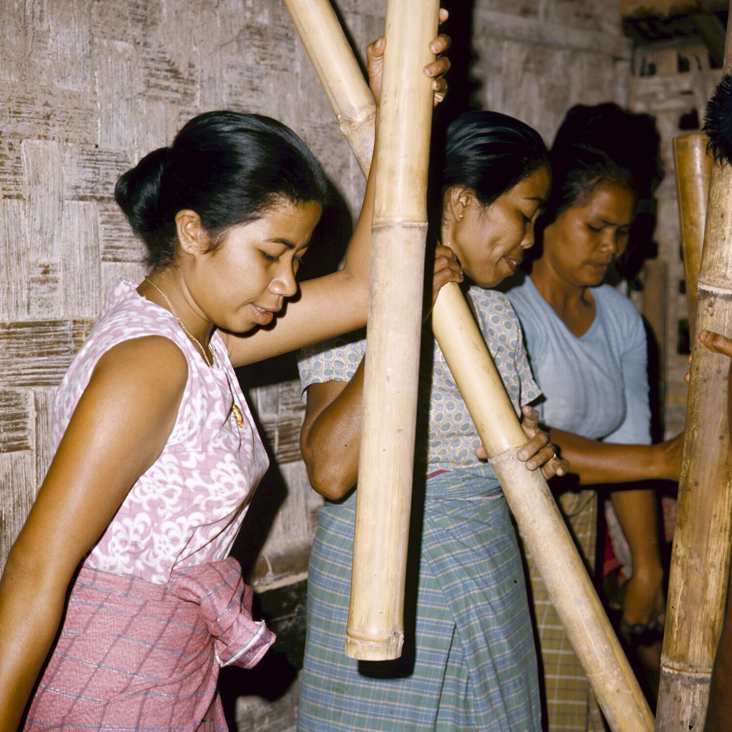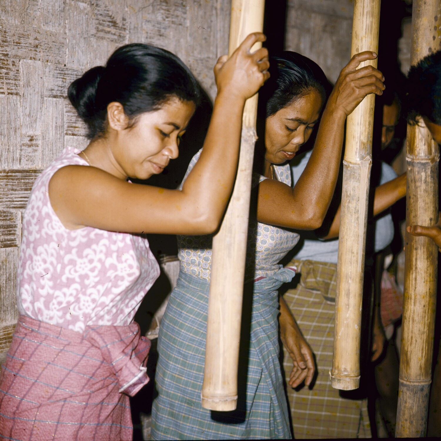 Het dorsen van rijst met een bamboe stamper, Rante P...