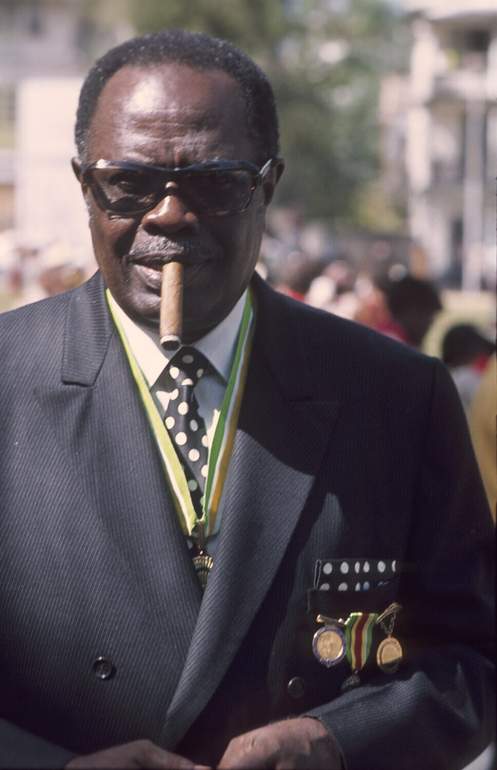Een oudgediende met zijn decoraties op Koninginnlag '75
