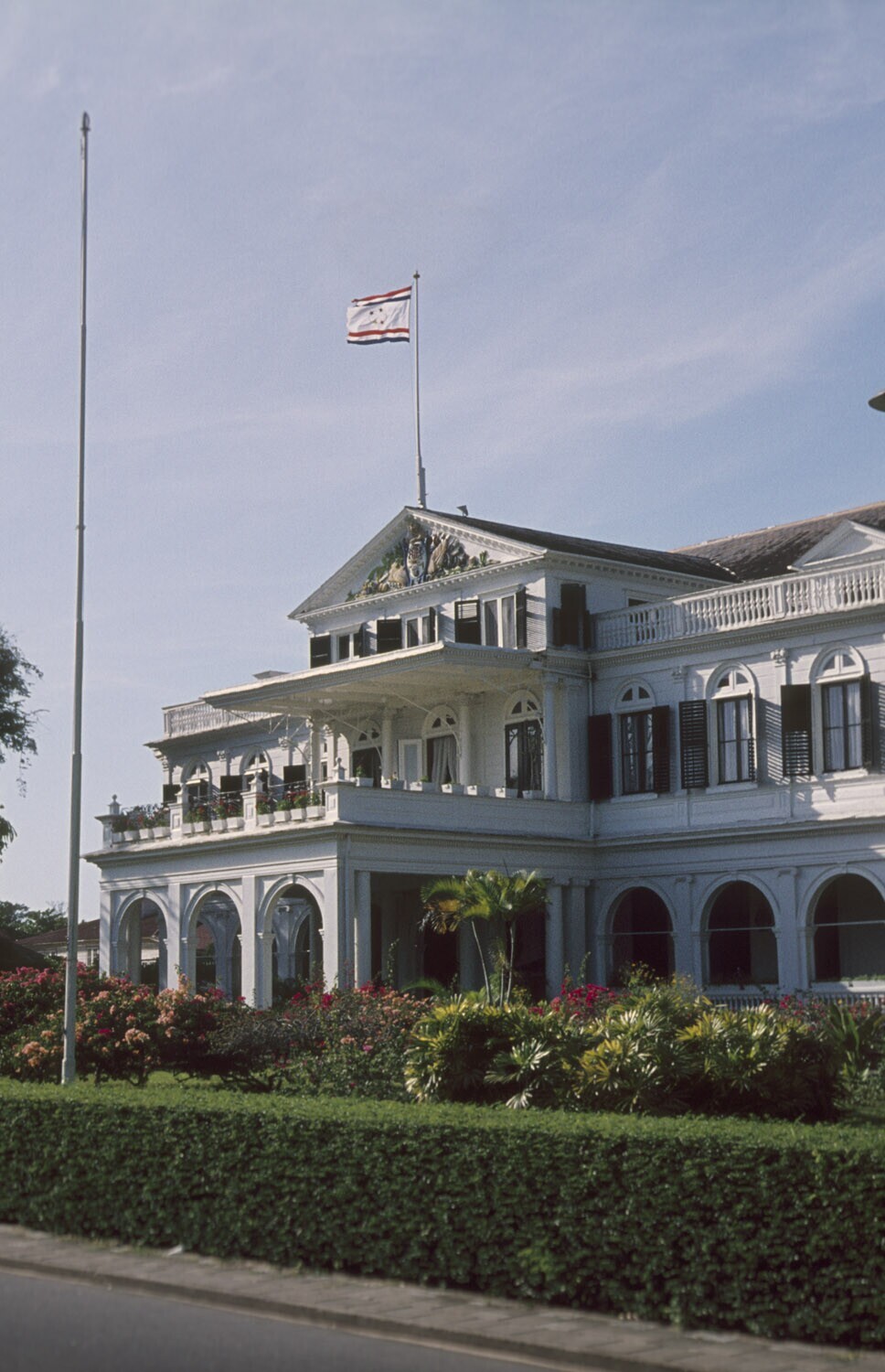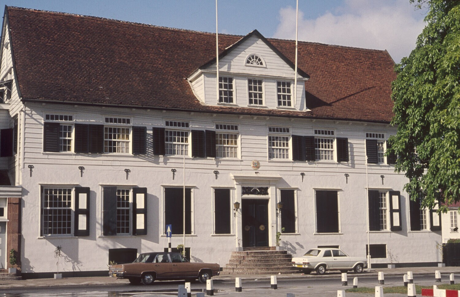 Het gouverneurshuis/presidentswoning met de oude Sur...