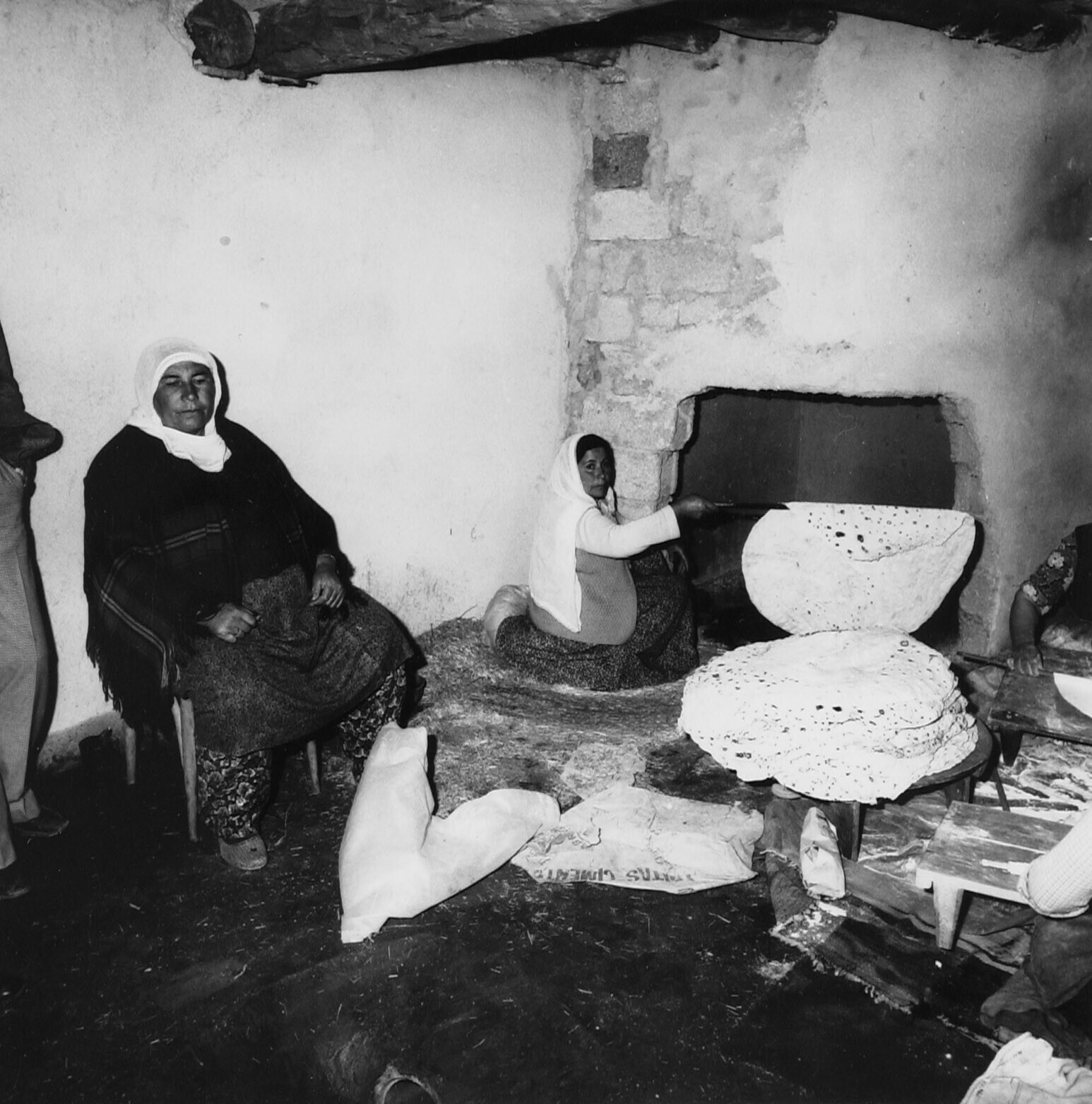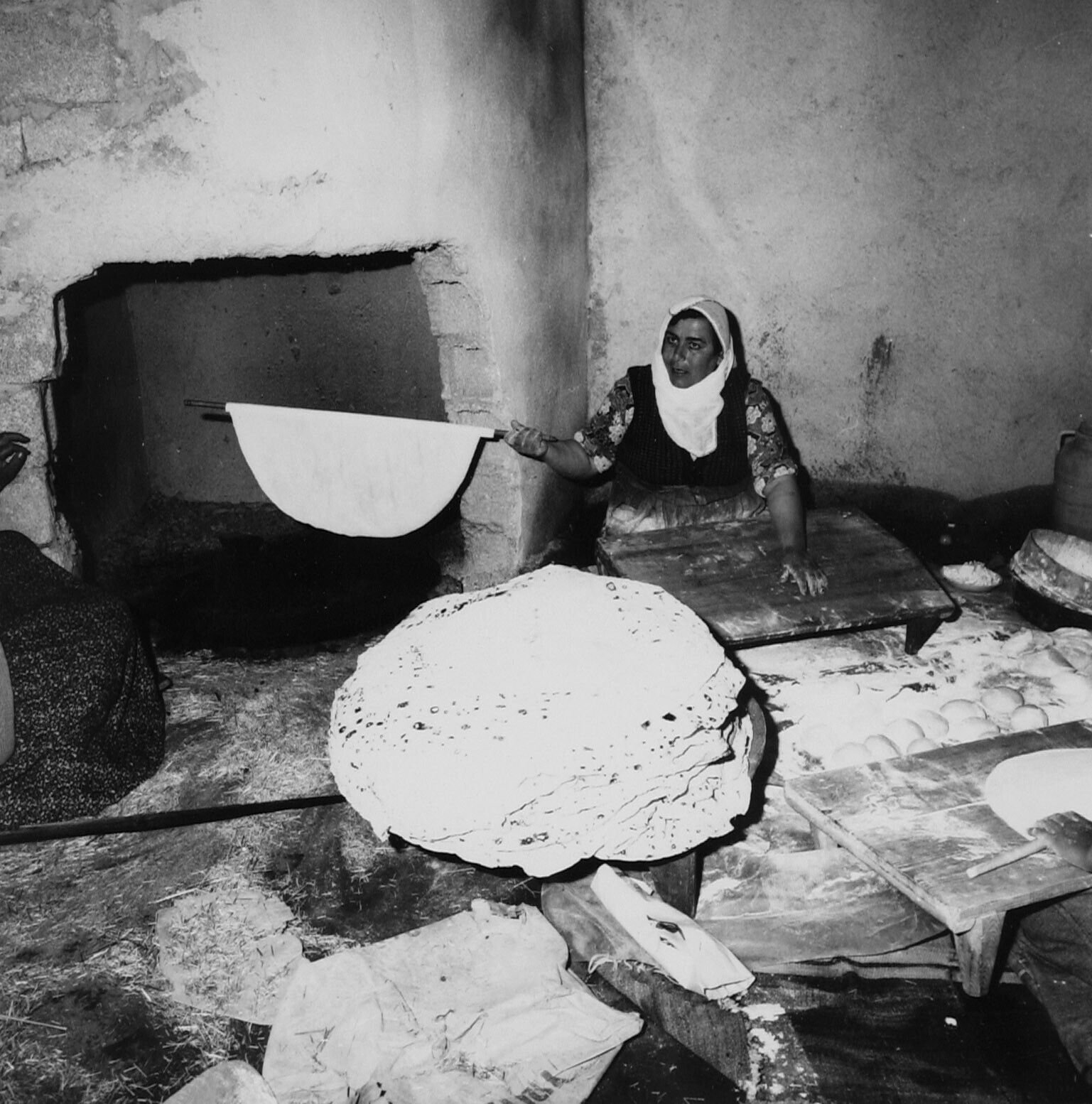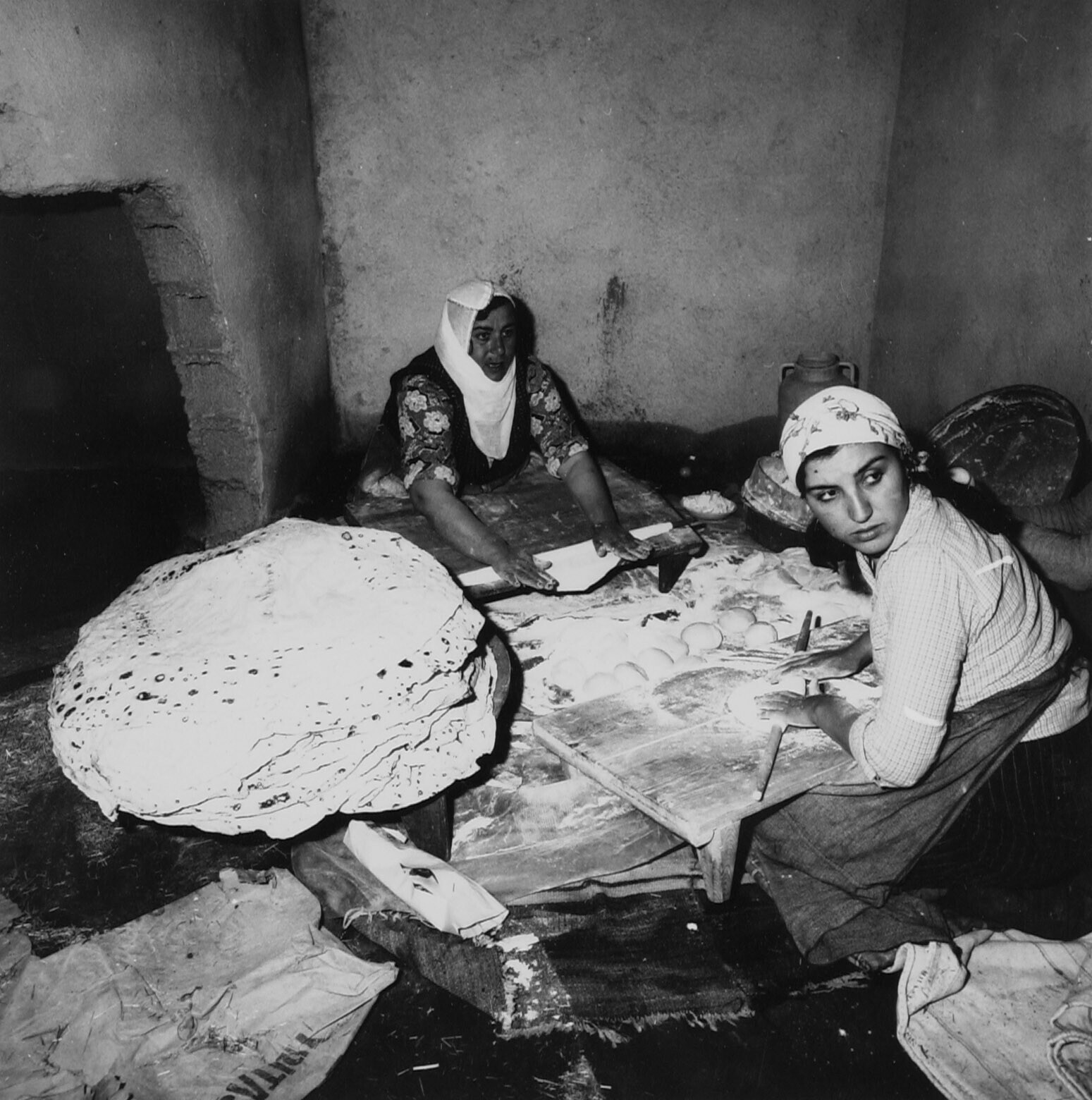 Het bakken van dunne broden door dorpsvrouwen,de vro...