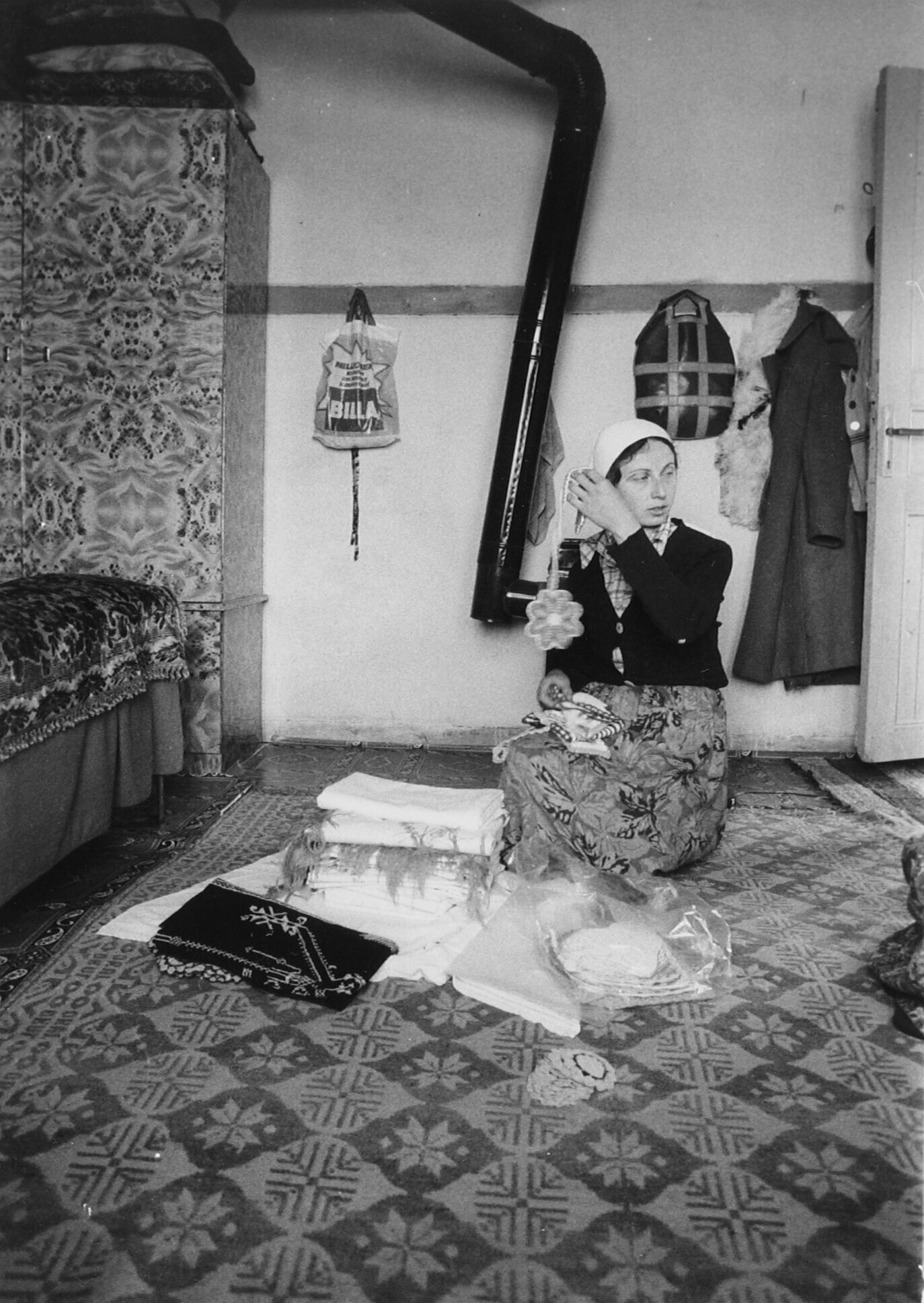 Interieur van een boerenwoning.Meisje laat haar zelf...
