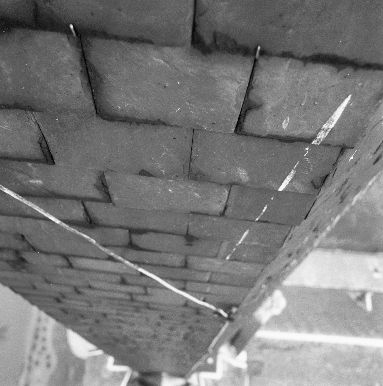 Detail muurwerk toren in de kerk