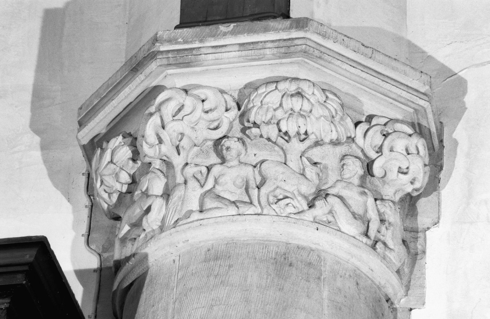 Interieur, kapiteel van halfzuil in de kooromgang, t...