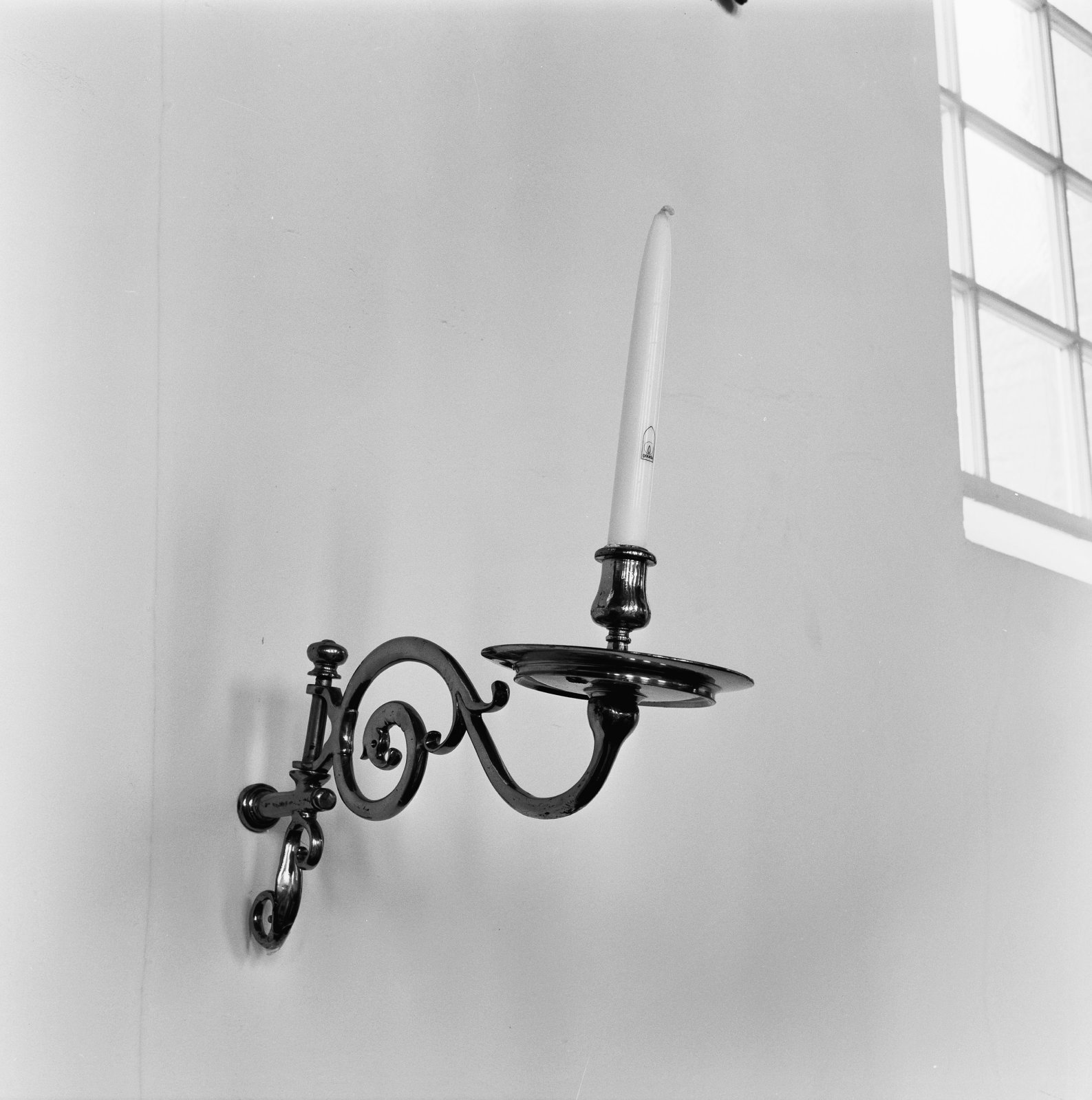 Interieur, koperen wandarm kandelaar