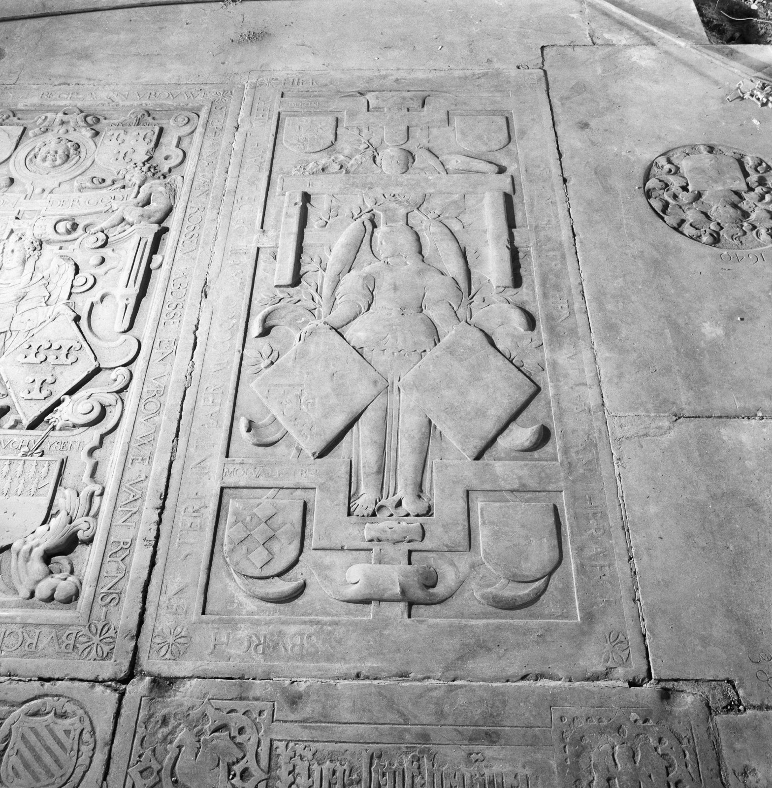 Interieur, grafzerk in het middenschip