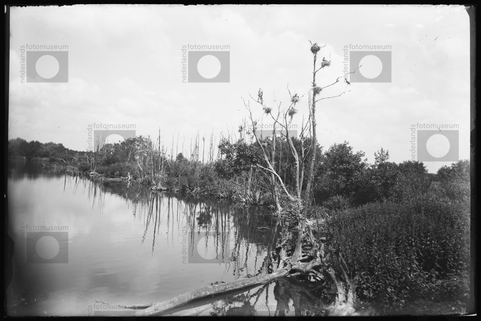 Nest met eieren van Aalscholver in eendenkooi, Lekke...