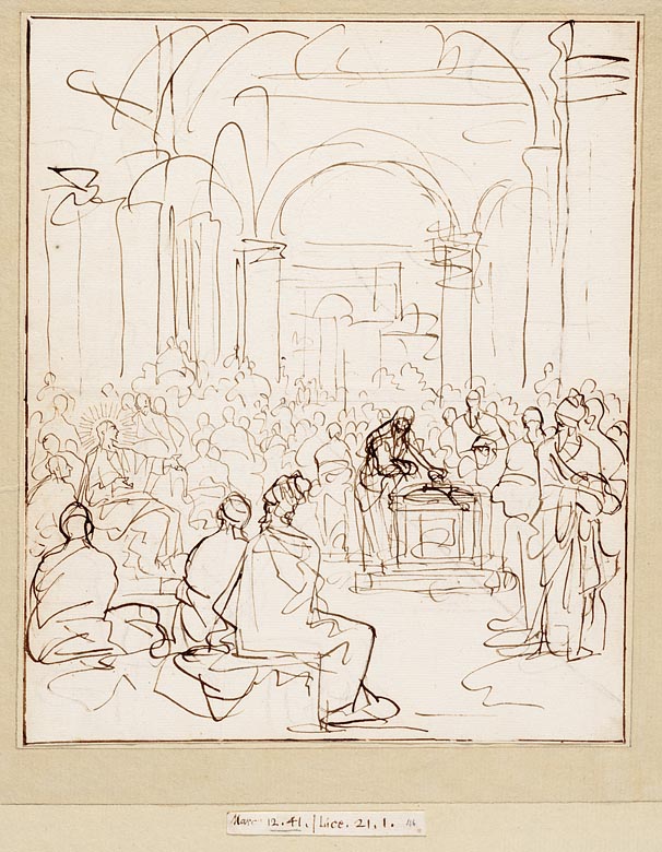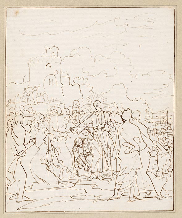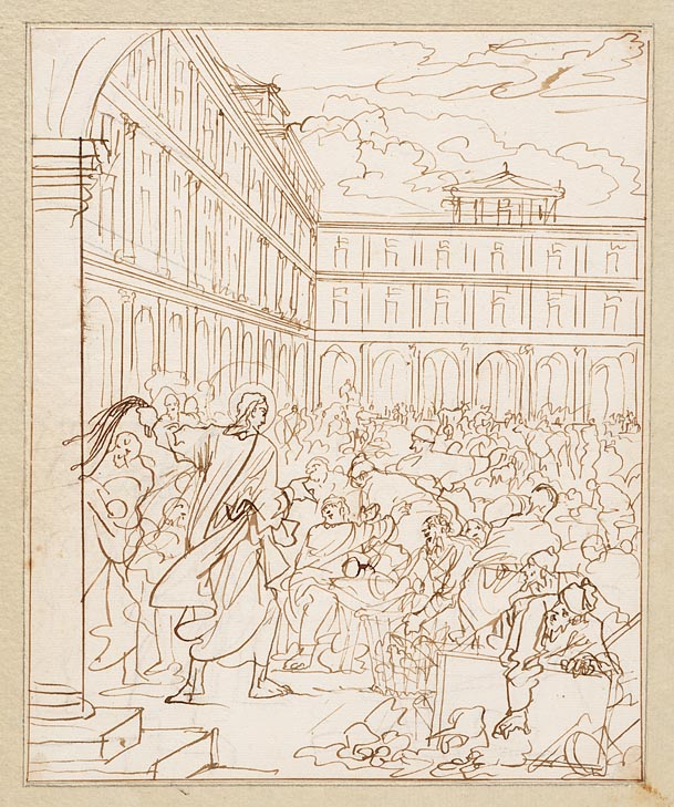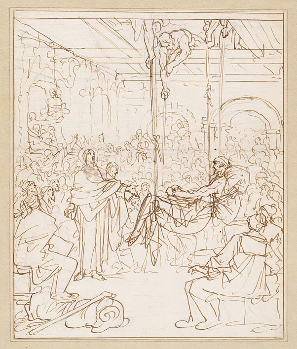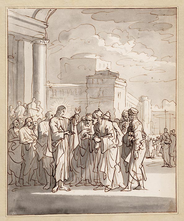 Jezus, omringd door de afgezondenen der Farizeeën, t...
