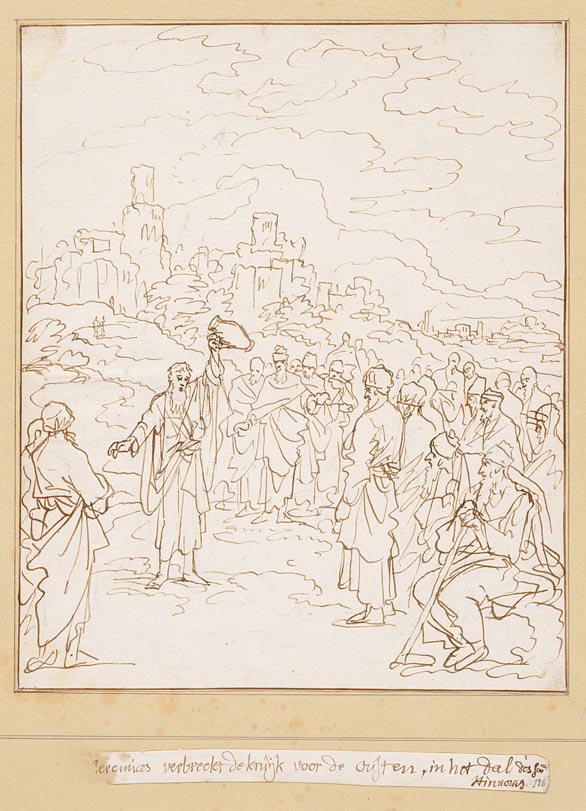 Jeremia breekt de aarden kruik bij zijn aankondiging...
