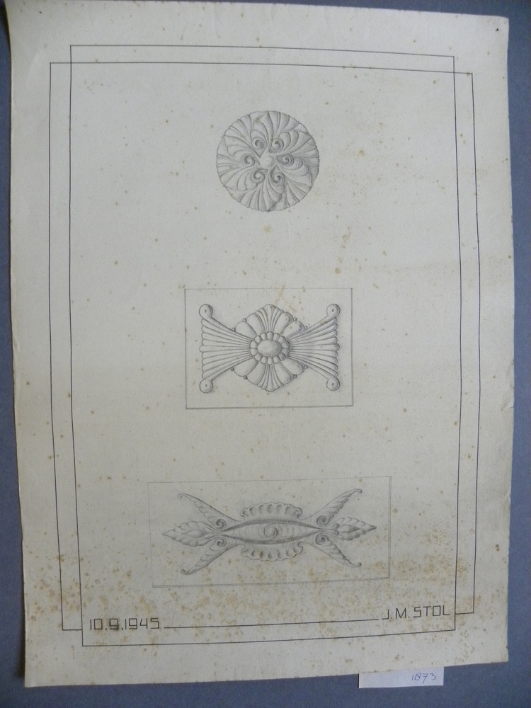 Tekeningen op papier voorstellende ontwerpen door J....