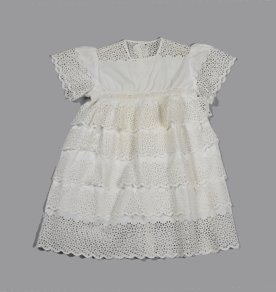 Kinderschort van ecrukleurige katoen, geborduurd met...