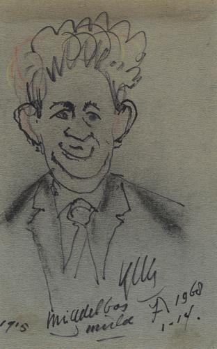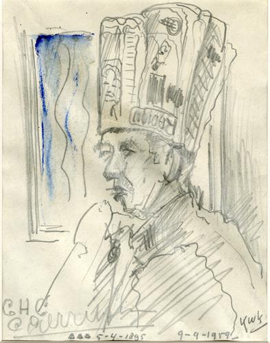 Dhr Gerritsen, met een "steek" op zijn hoofd