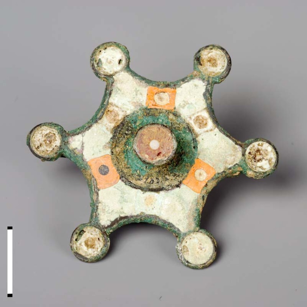 Geëmailleerde schijffibula van brons uit de Romeinse...