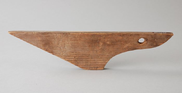 Vurenhouten wasstamper, langwerpig balkje met vier '...