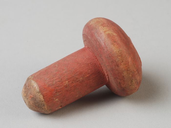 Rode, paddenstoel-vormige zweeptol