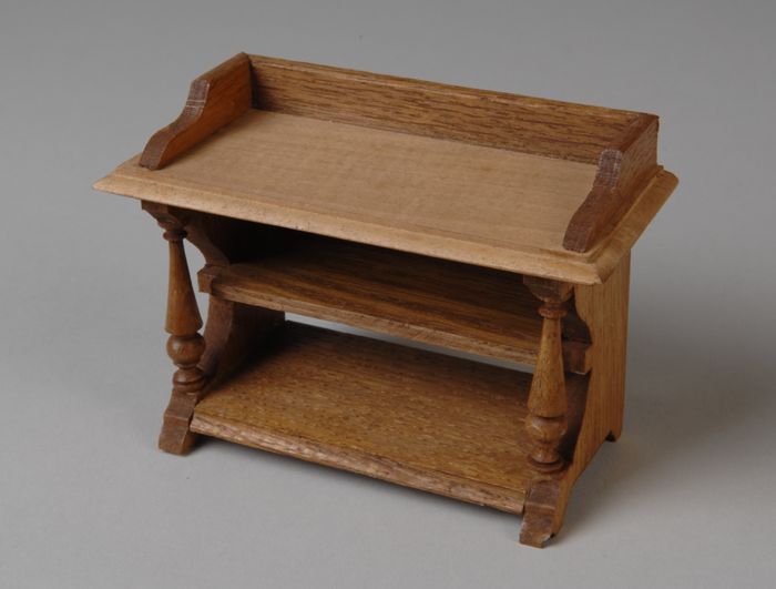 Eikenhouten miniatuur dressoir met opstaande rand om...